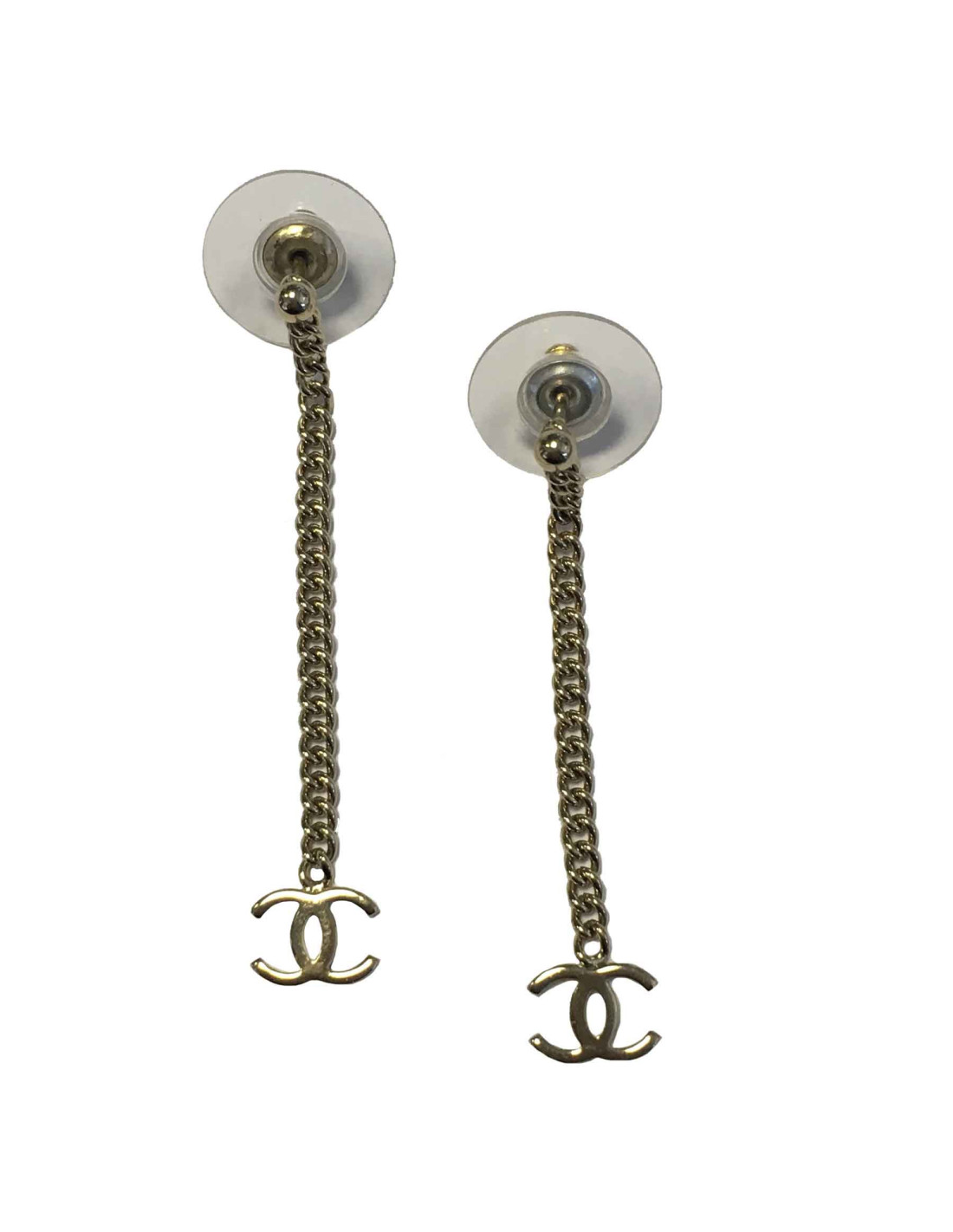 Boucles d'oreille clous CHANEL pendantes en métal doré