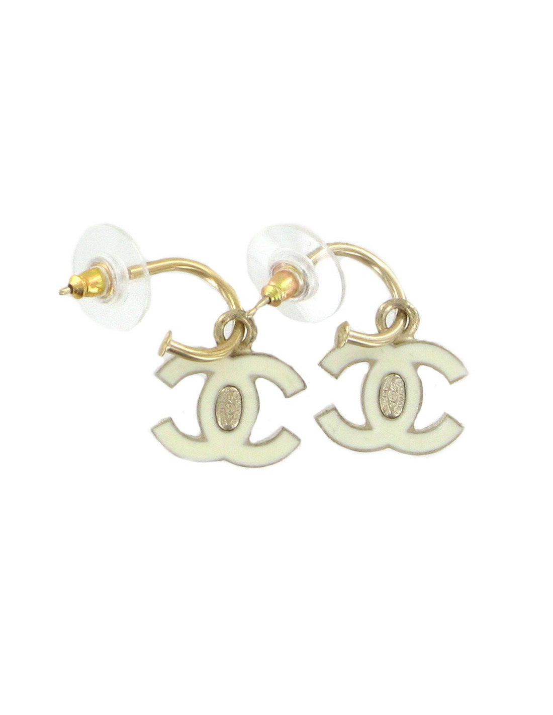 Clous d'oreille créoles CHANEL "CC" émail écru