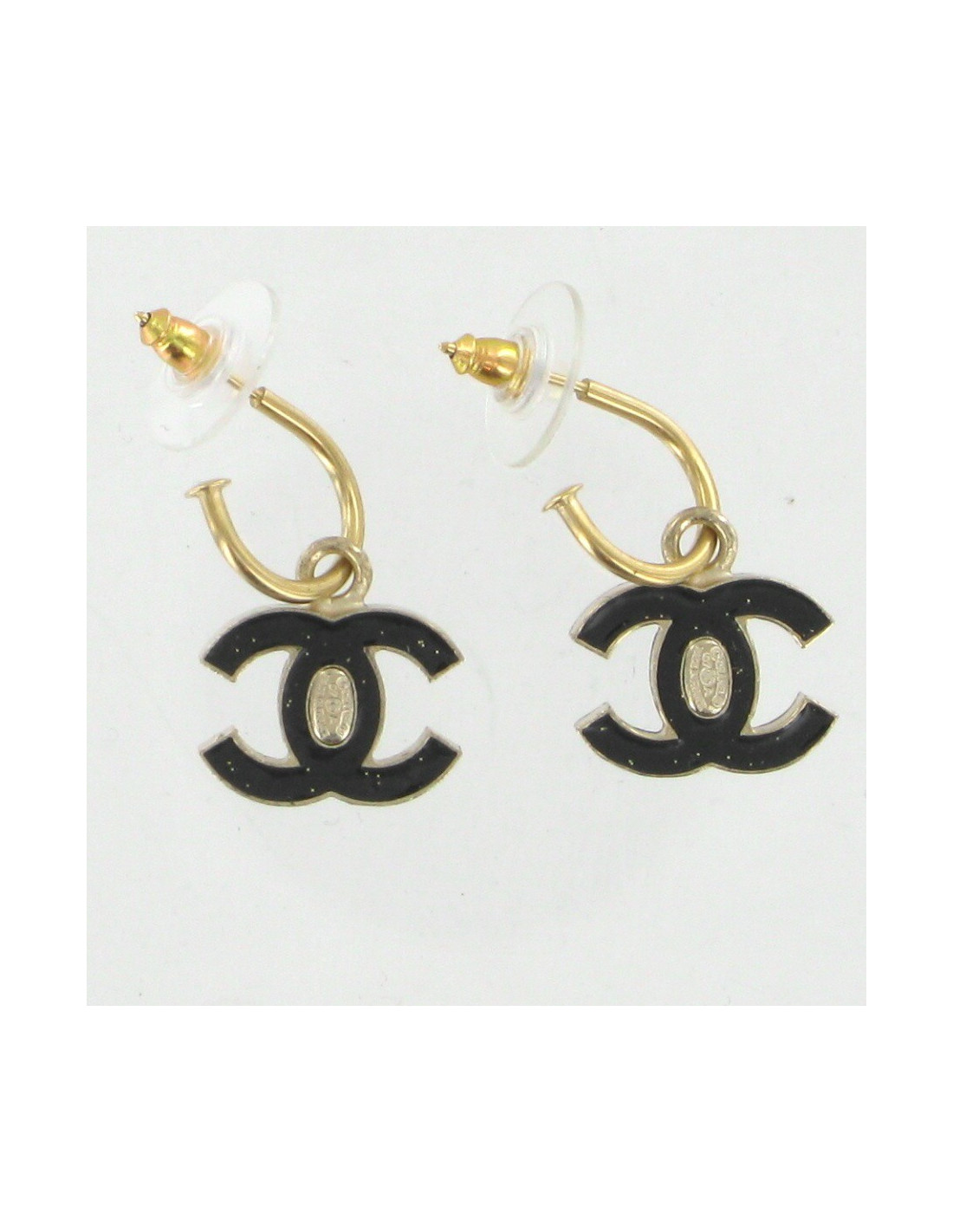 Créoles CC CHANEL émail noir, strass et perles nacrées