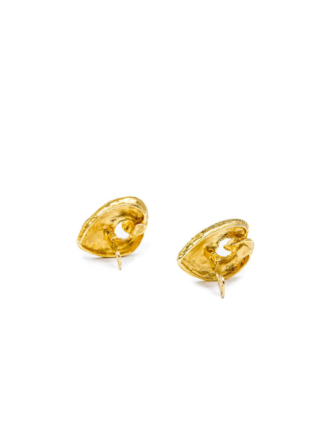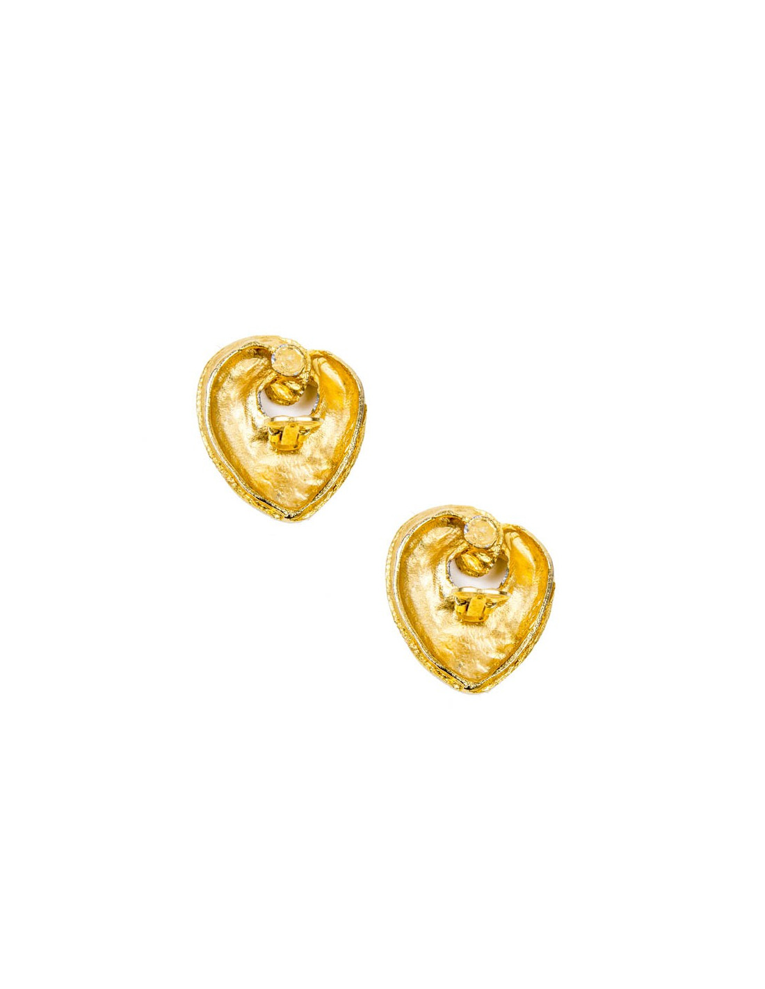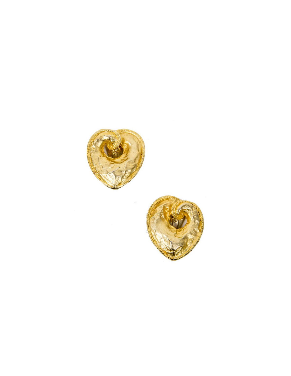 Clips vintage coeur en métal doré à l’or fin. Le travail et le dessin de ces boucles d'oreille pour nous, sont attribués à Christian Lacroix. En l'absence de pastille nous ne pouvons le confirmer formellement. Ils sont en très bon état.