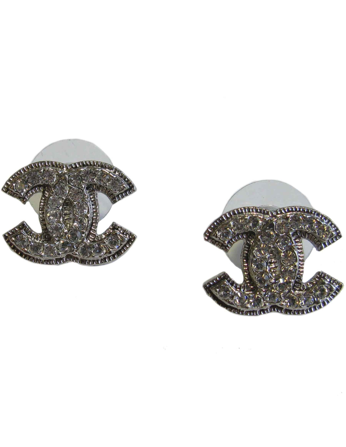 Boucles d'oreille clous CHANEL CC strass et métal argenté