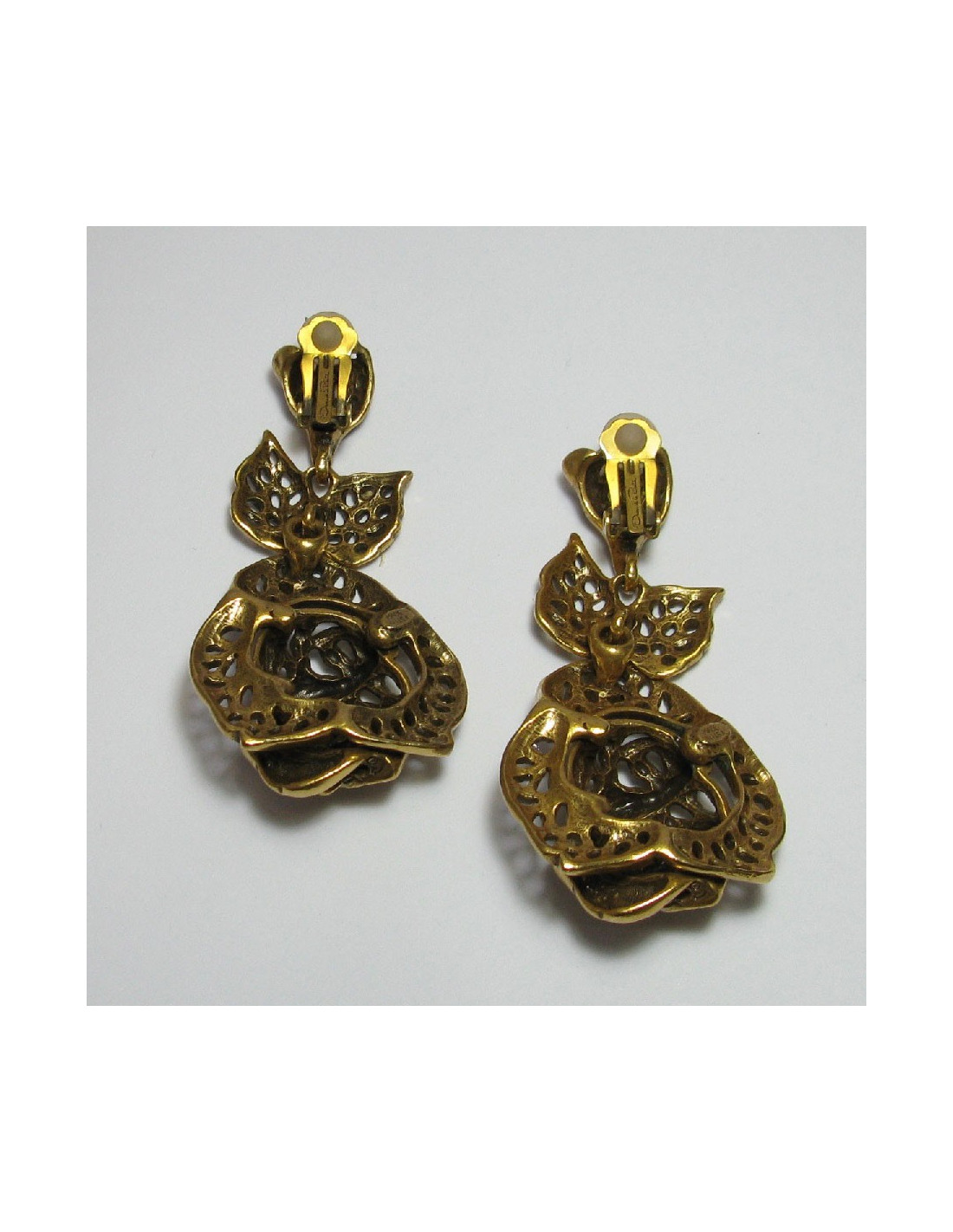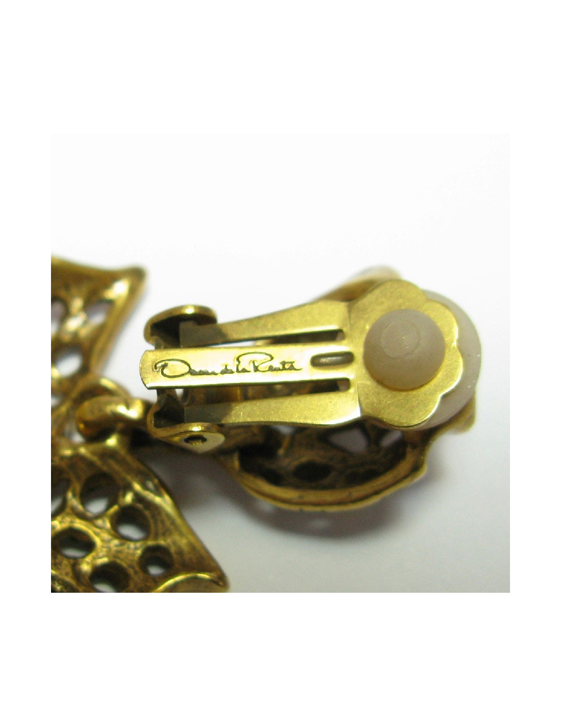 Boucles d'oreille clips OSCAR DE LA RENTA pendantes en métal doré