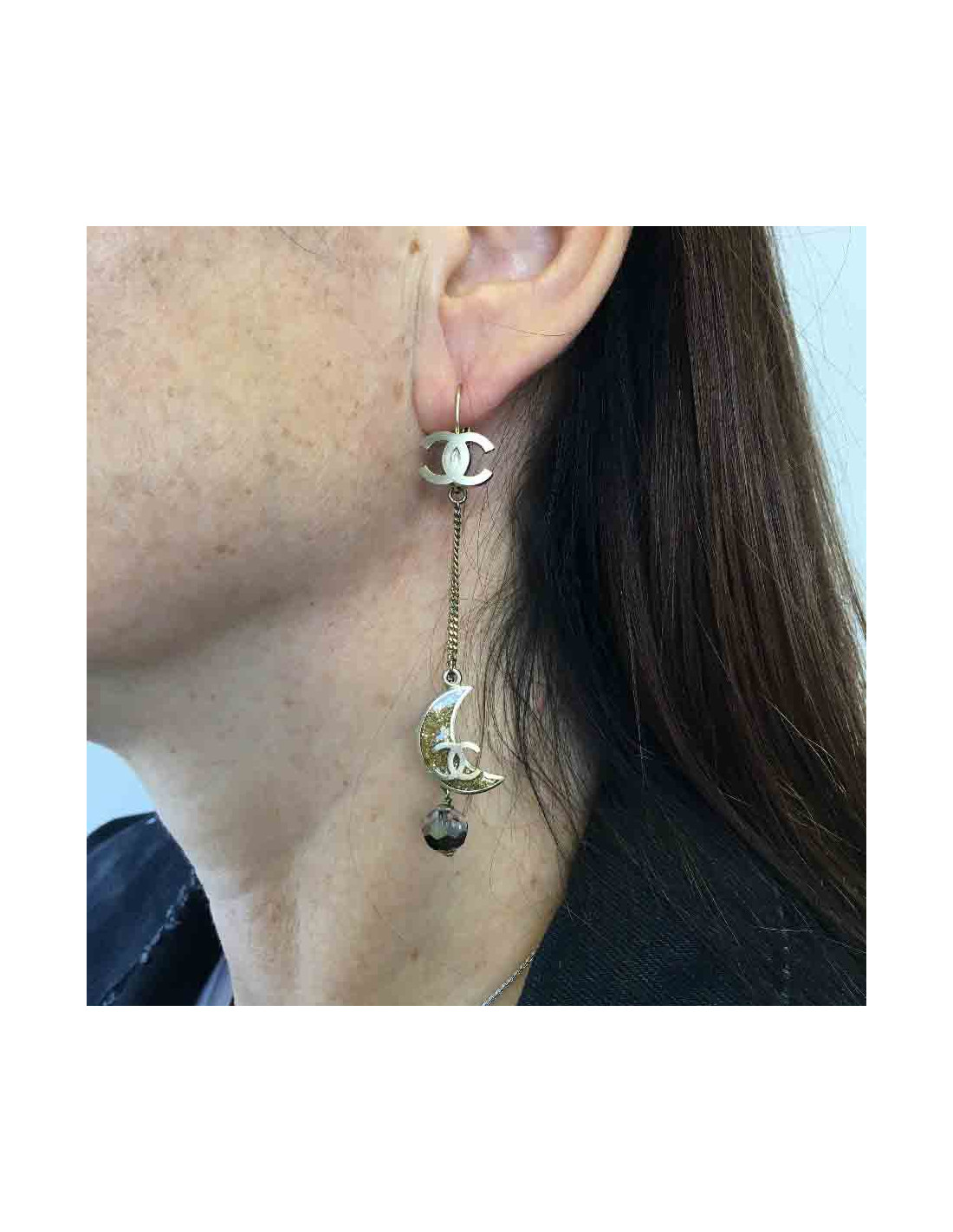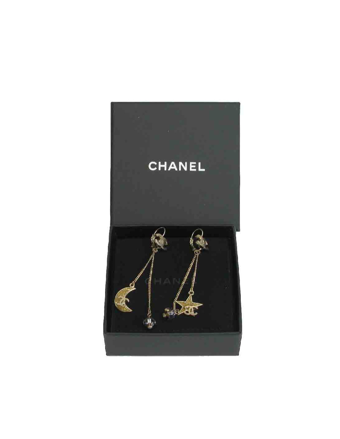 Boucles d'oreille clous CHANEL pendantes étoile et lune en métal doré