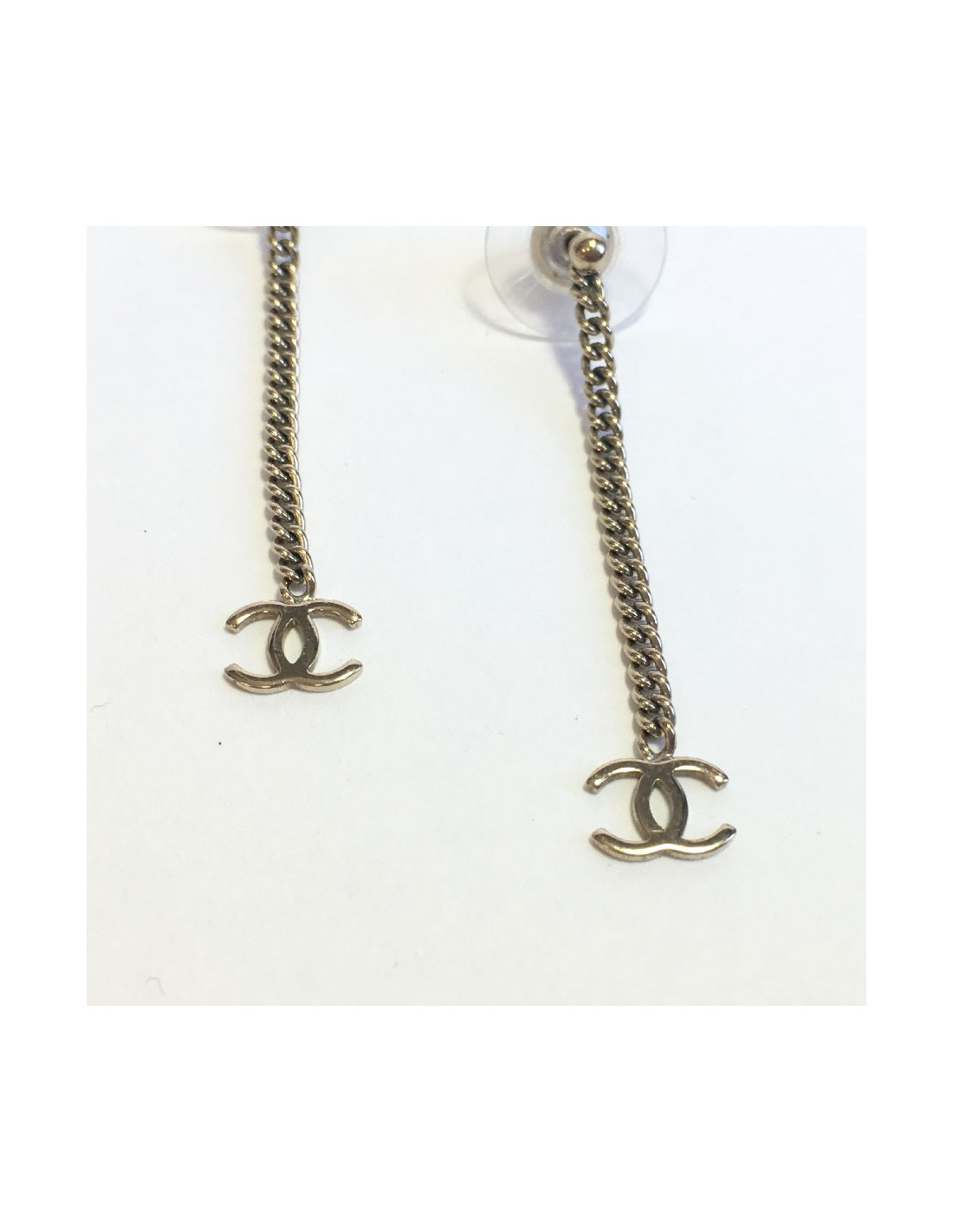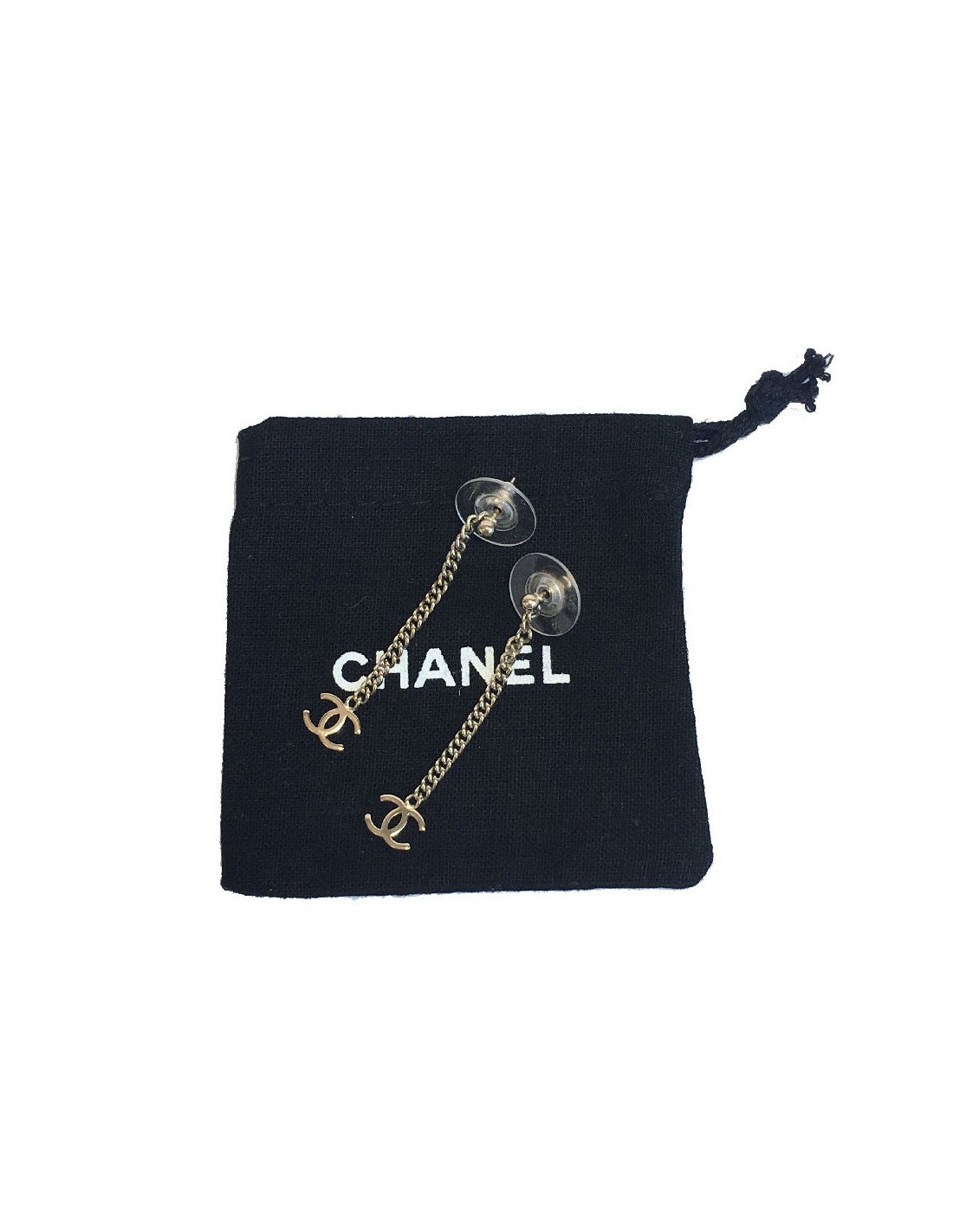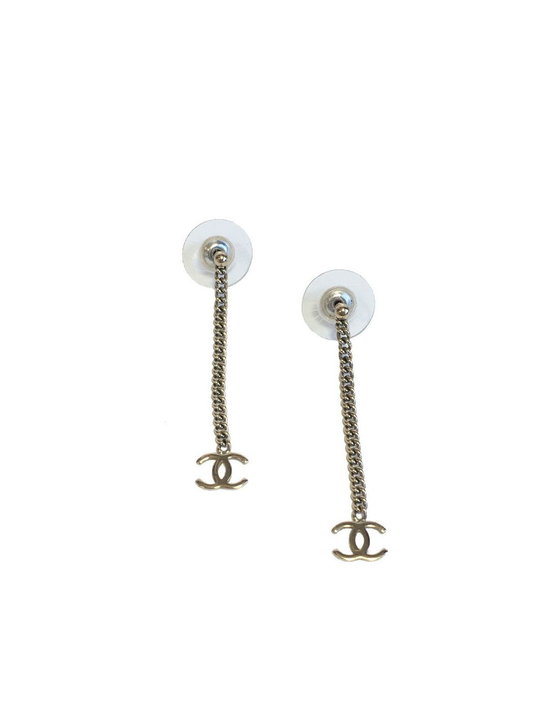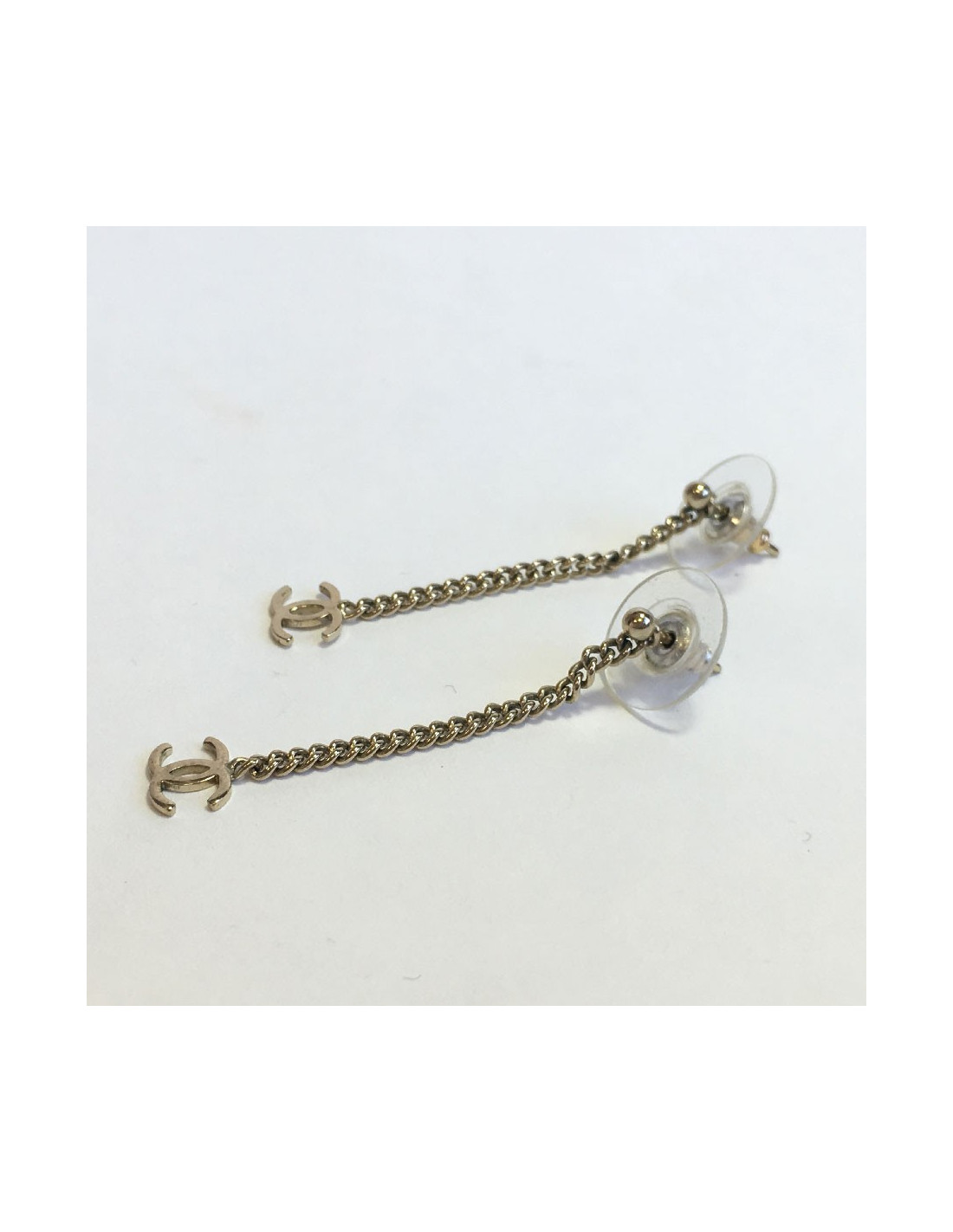 Boucles d'oreille clous CHANEL Pendantes en métal doré