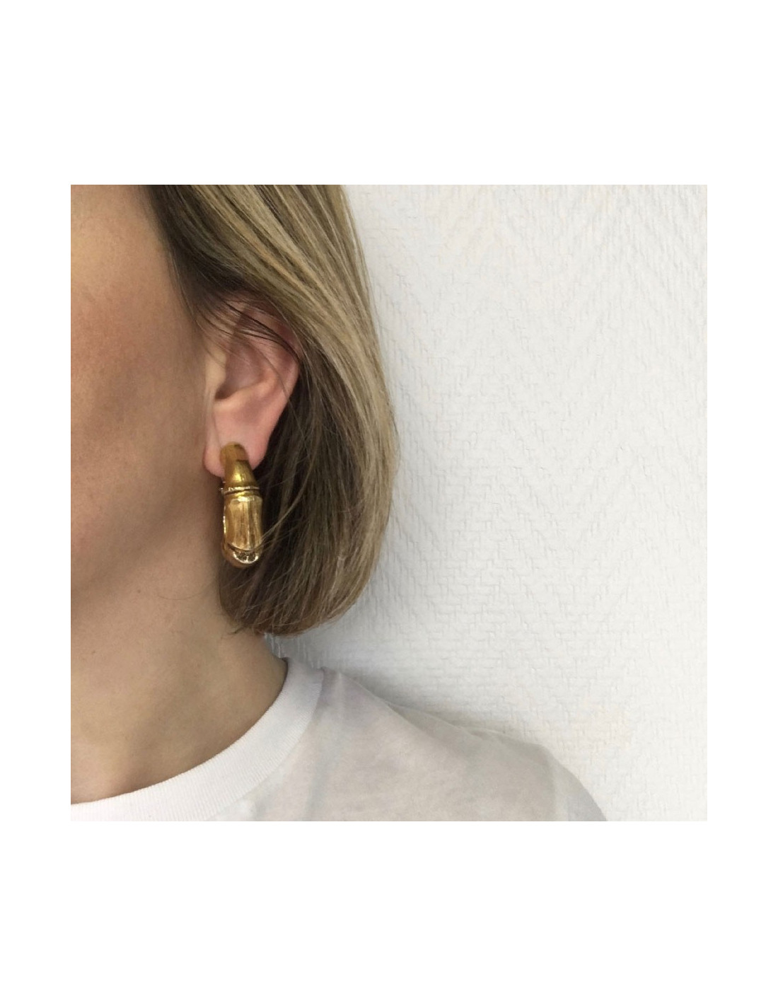 Boucles d'oreille clips YSL YVES SAINT LAURENT créoles bambou dorés