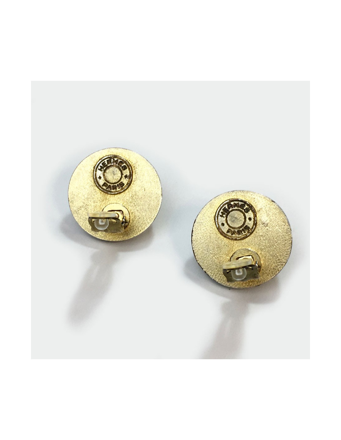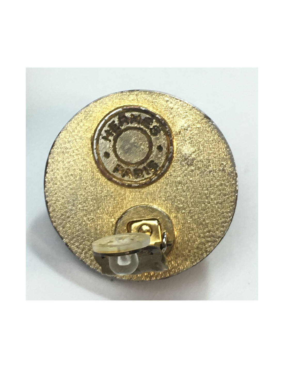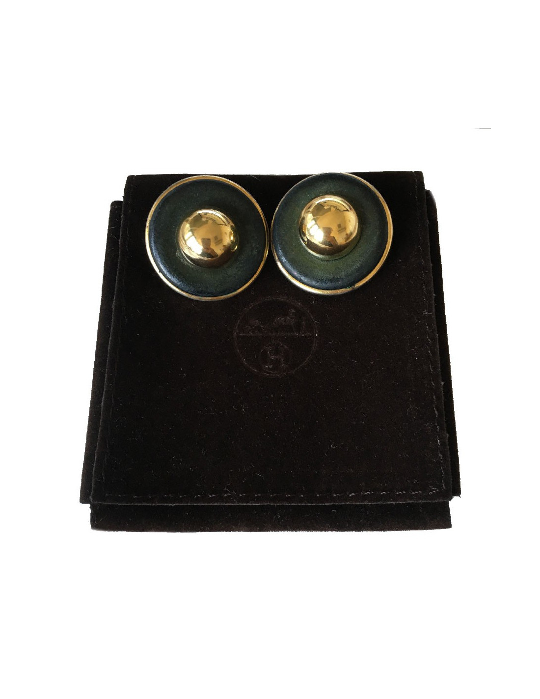 Boucles d'oreille clips HERMES Vintage cuir kaki