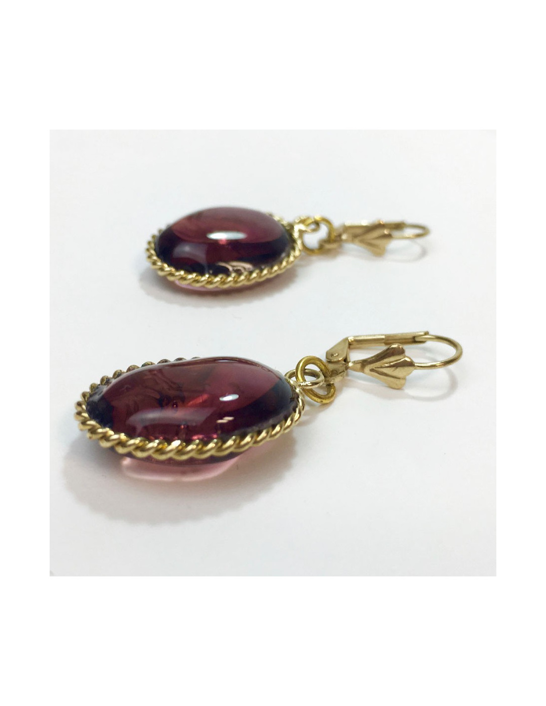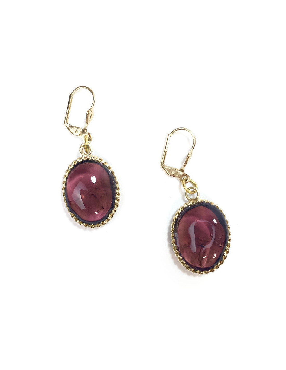 Boucles d'oreille clous MARGUERITE DE VALOIS en pâte de verre de couleur améthyste et métal doré à l'or fin.