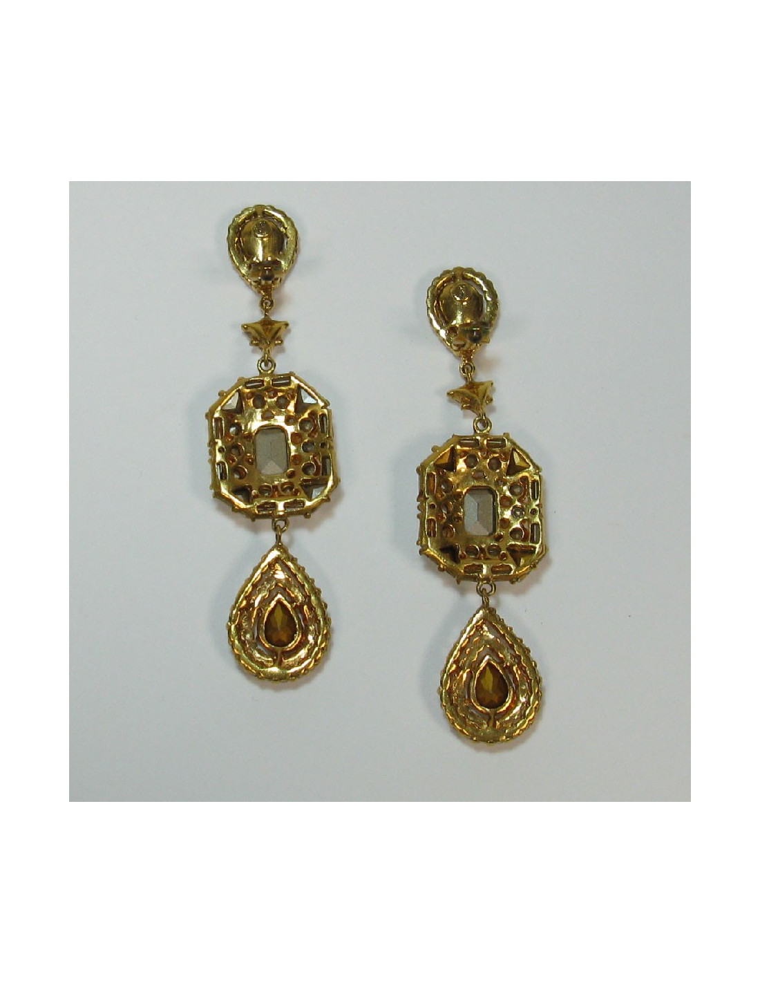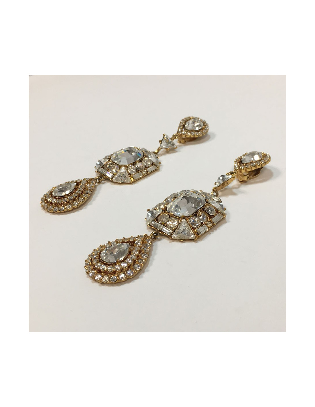 Imposante clips d’oreilles Yves Saint Laurent en strass en métal doré