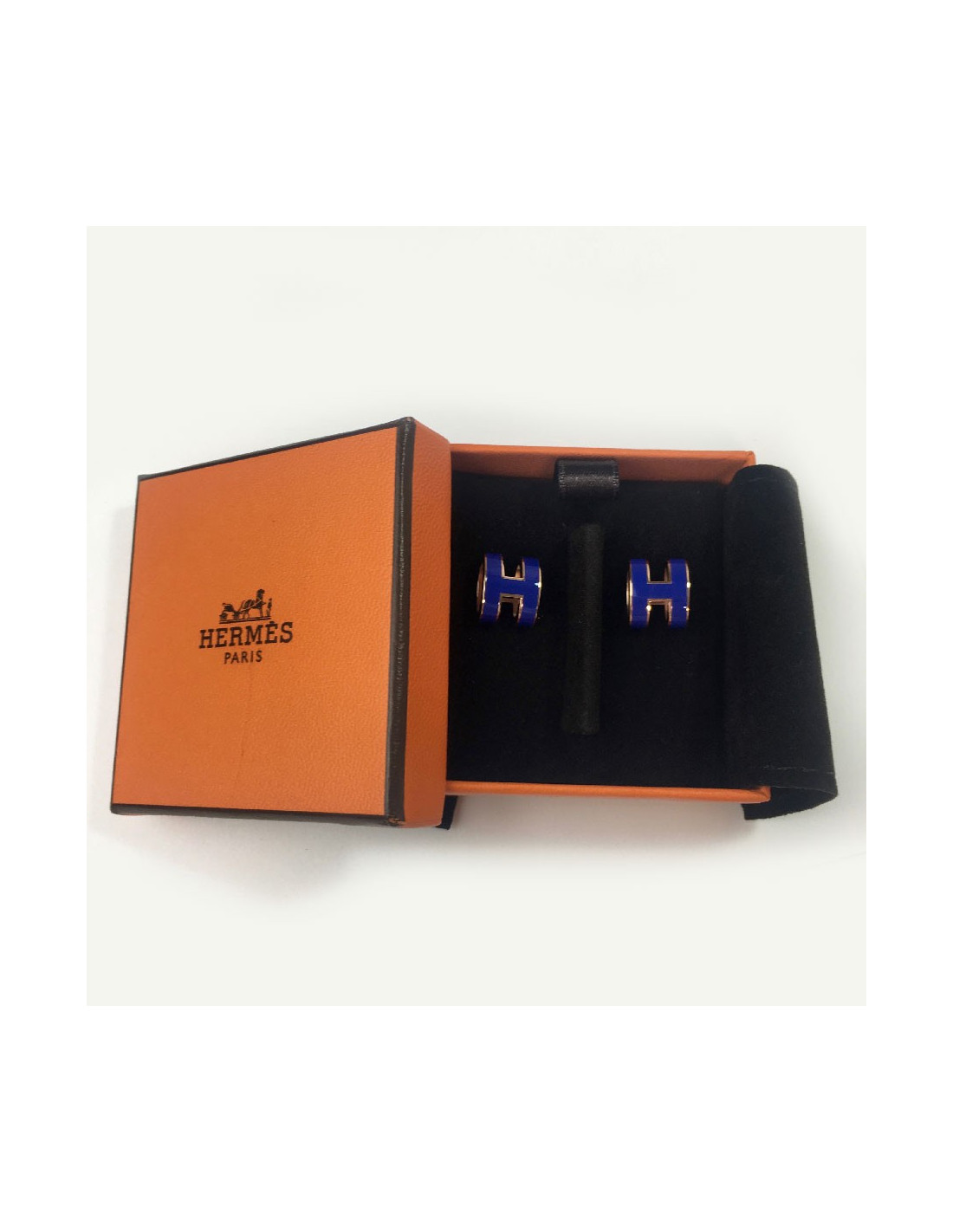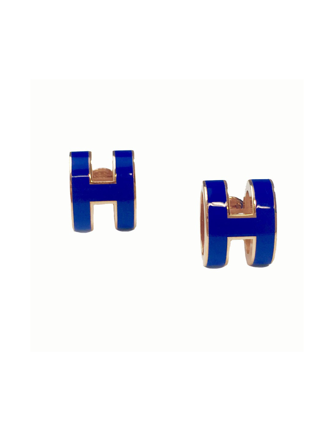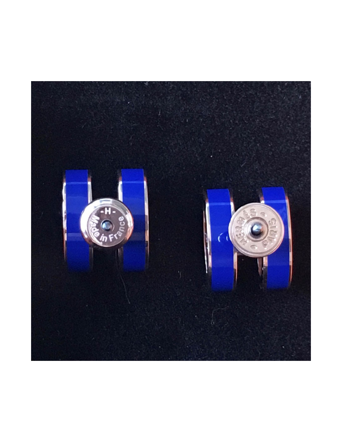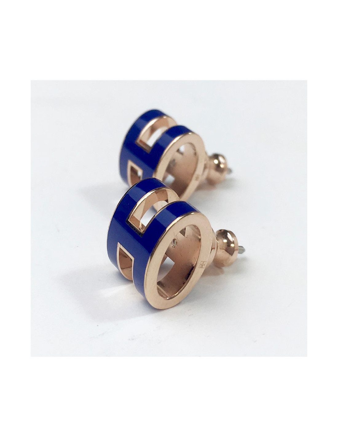Boucles d'oreille clous Hermès Pop H en laque bleue.