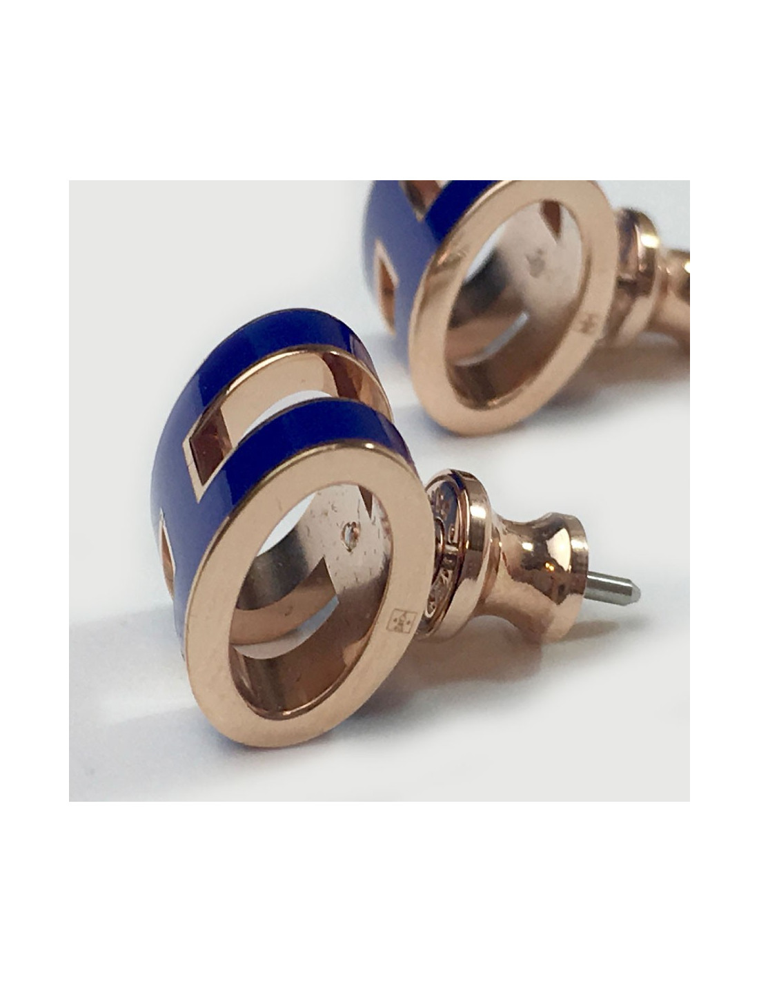 Boucles d'oreille clous HERMES Pop H en laque bleue et plaqué or rose