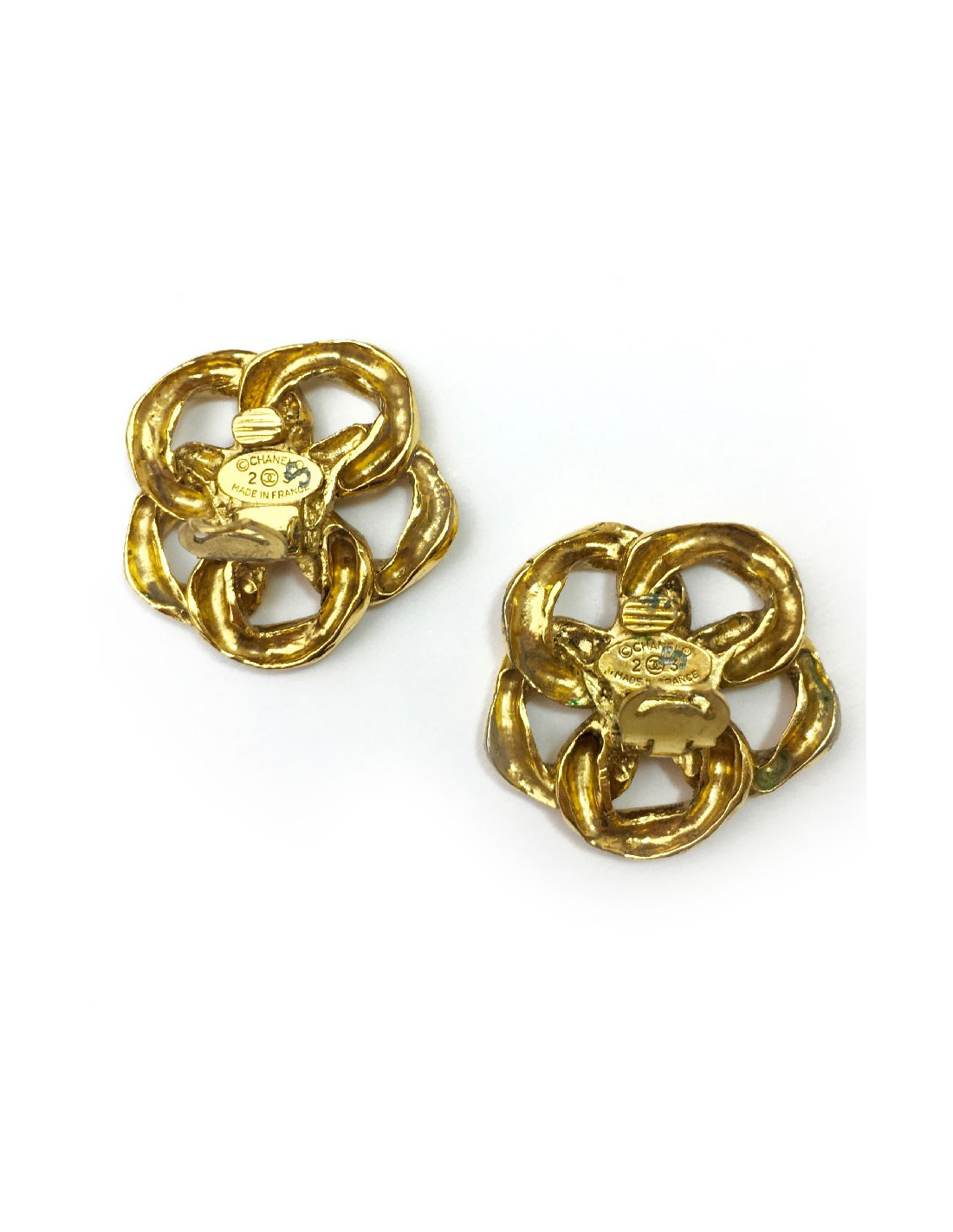 Boucles d'oreille clips CHANEL chaine Vintage en métal doré