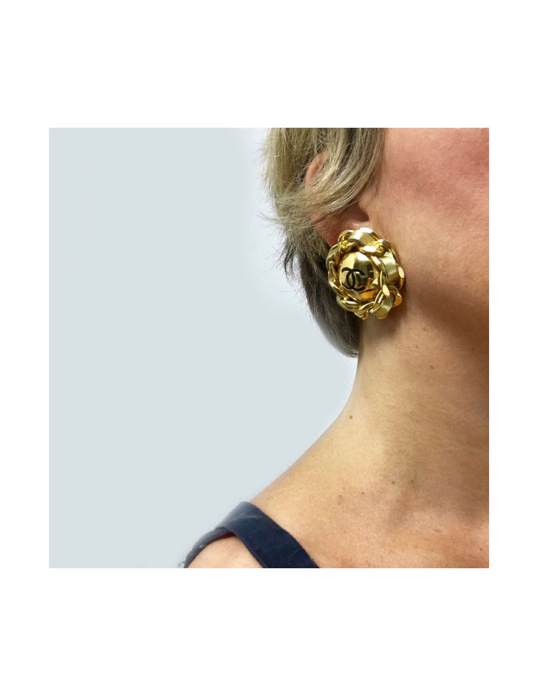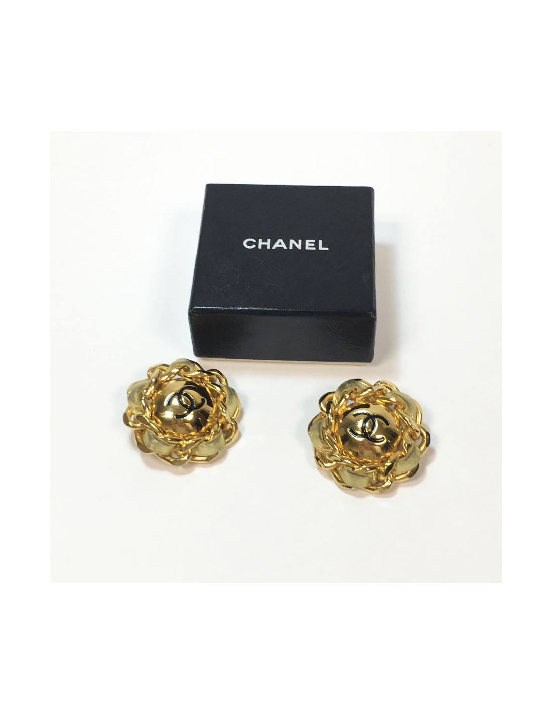 Boucles d'oreille clips CHANEL vintage cuir et métal doré