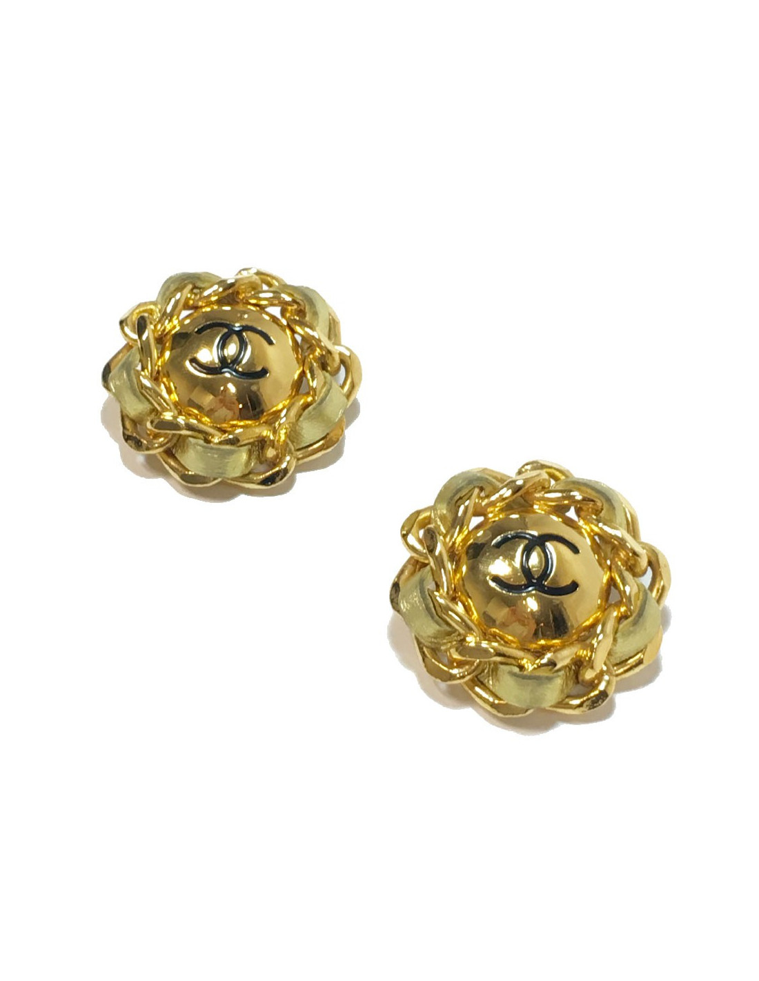 Boucles d'oreille clips Chanel vintage en cuir et métal doré.