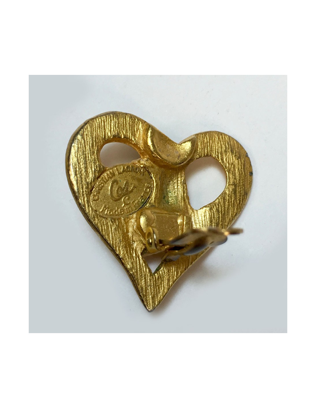 Boucles d'oreilles clips CHRISTIAN LACROIX coeur en métal doré or mat