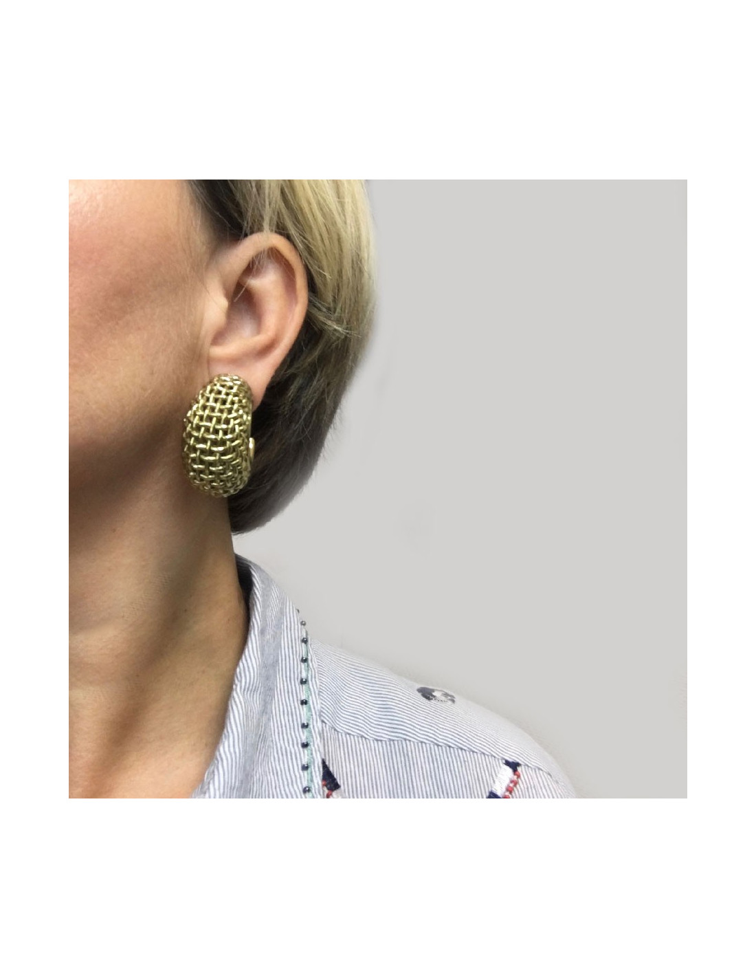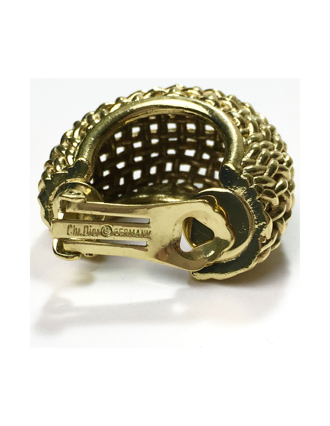 Boucles d’oreilles clips Christian Dior en métal doré. Made in Germany.