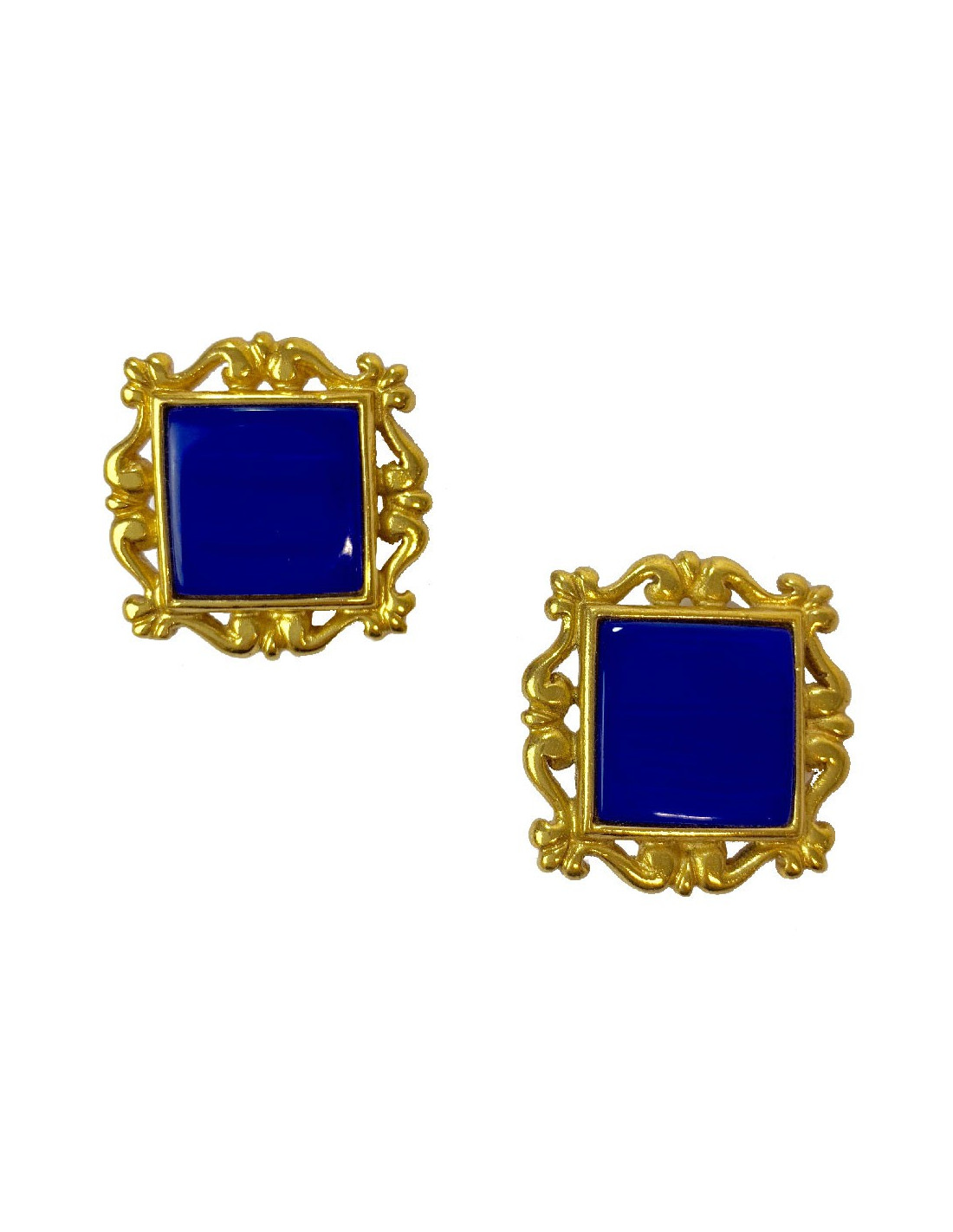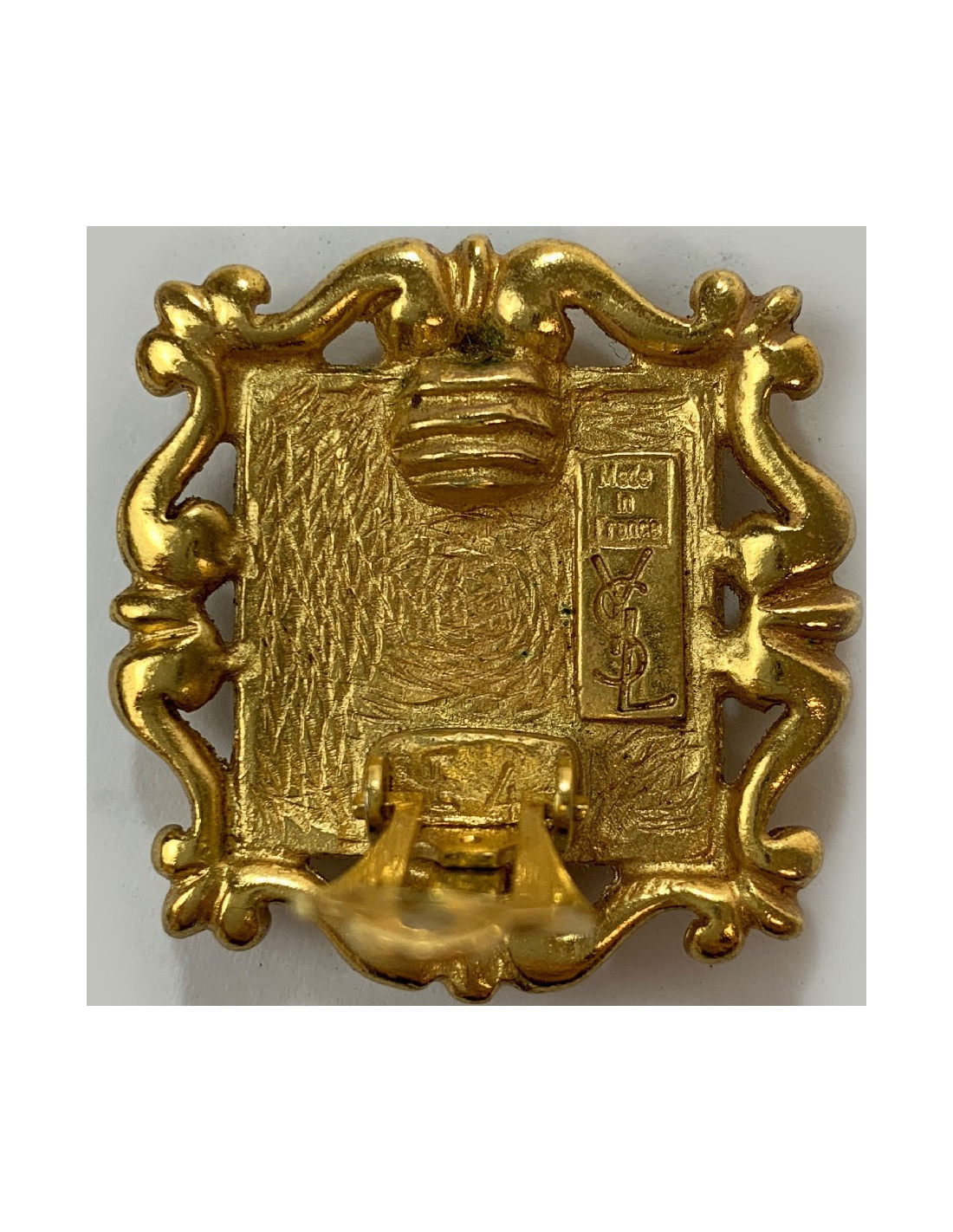 Boucles d'oreille clips YSL vintage dorés et résine bleue.