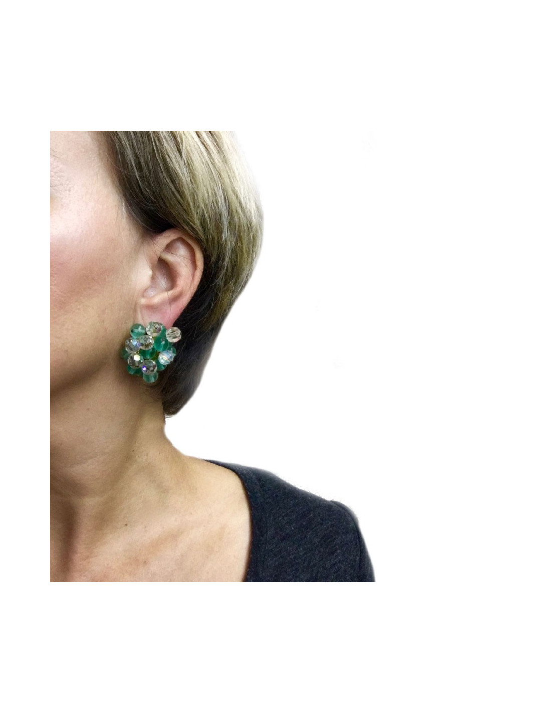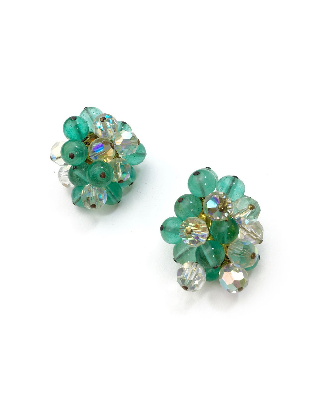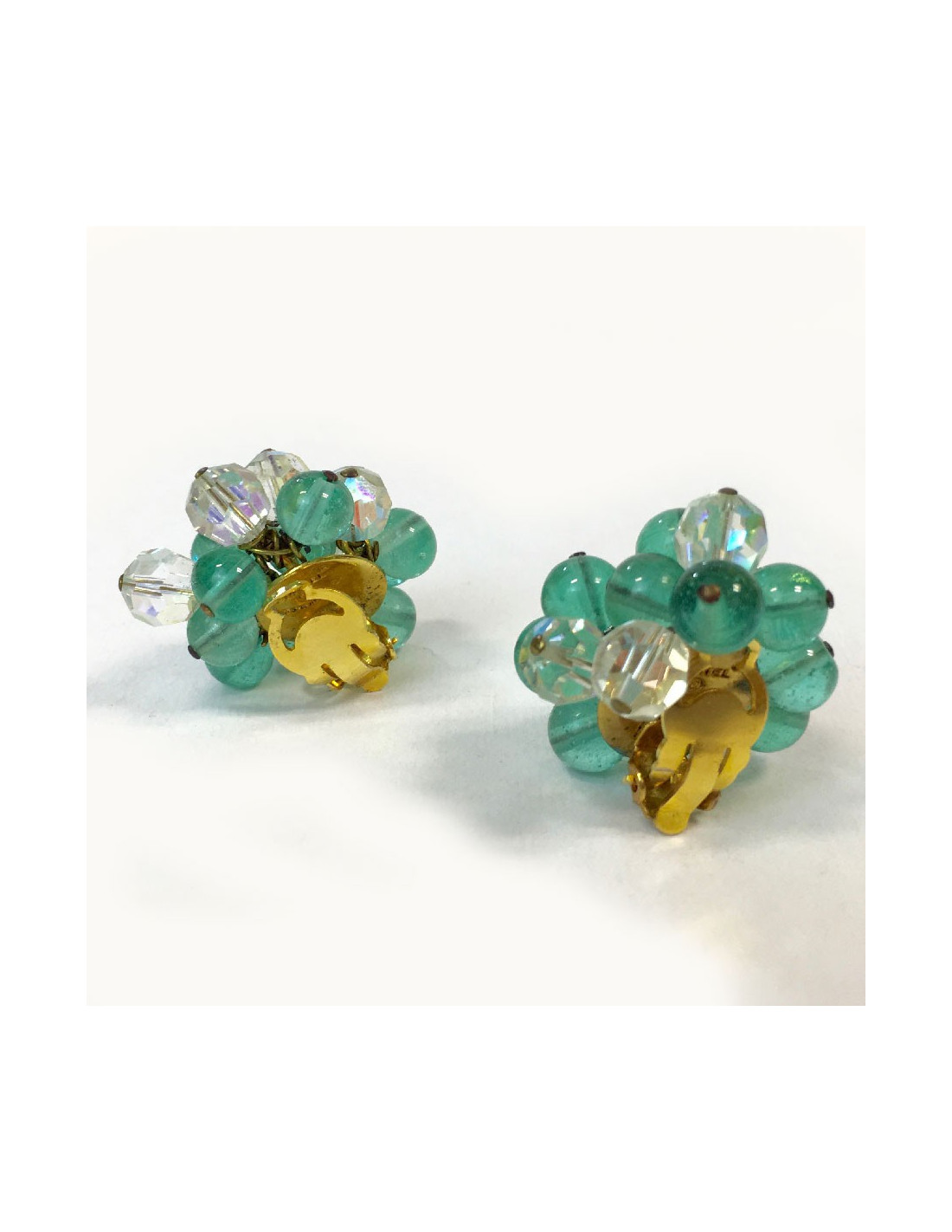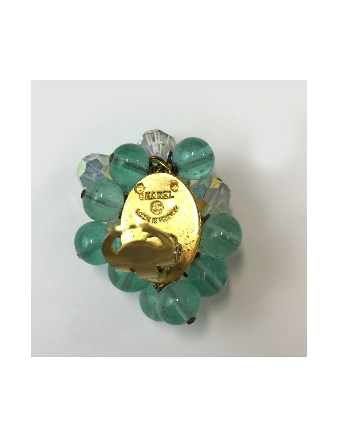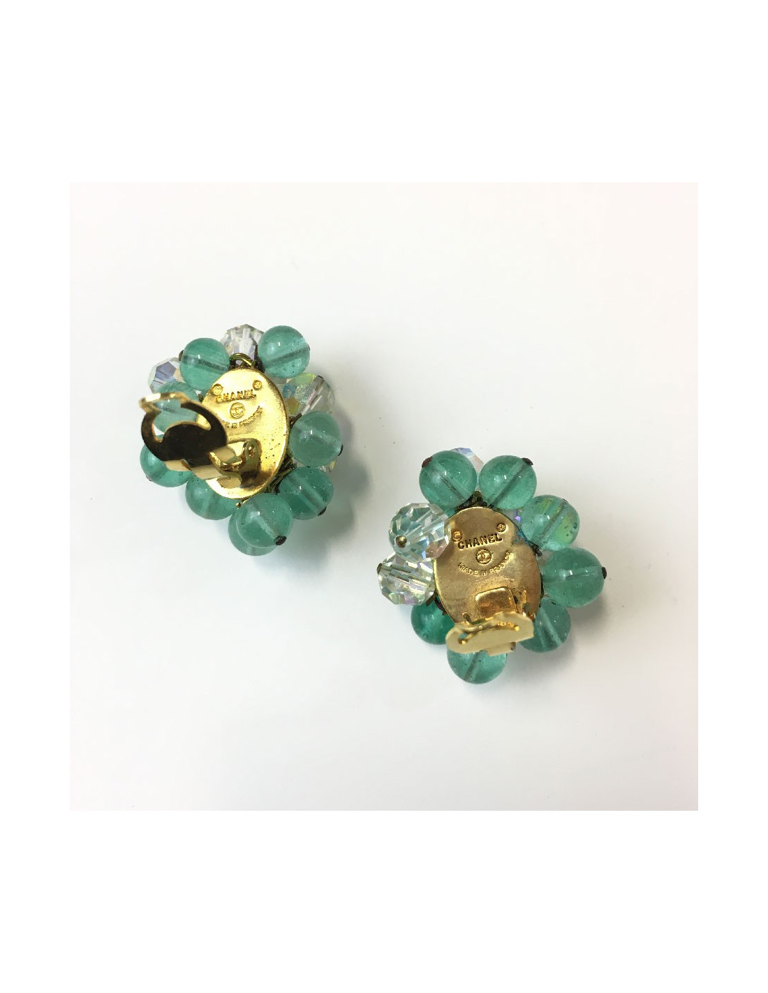 Boucles d'oreille CHANEL vintage perles pâte de verre vert d'eau