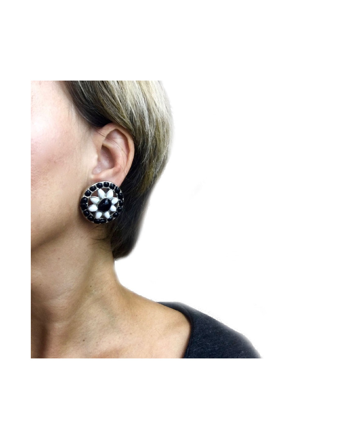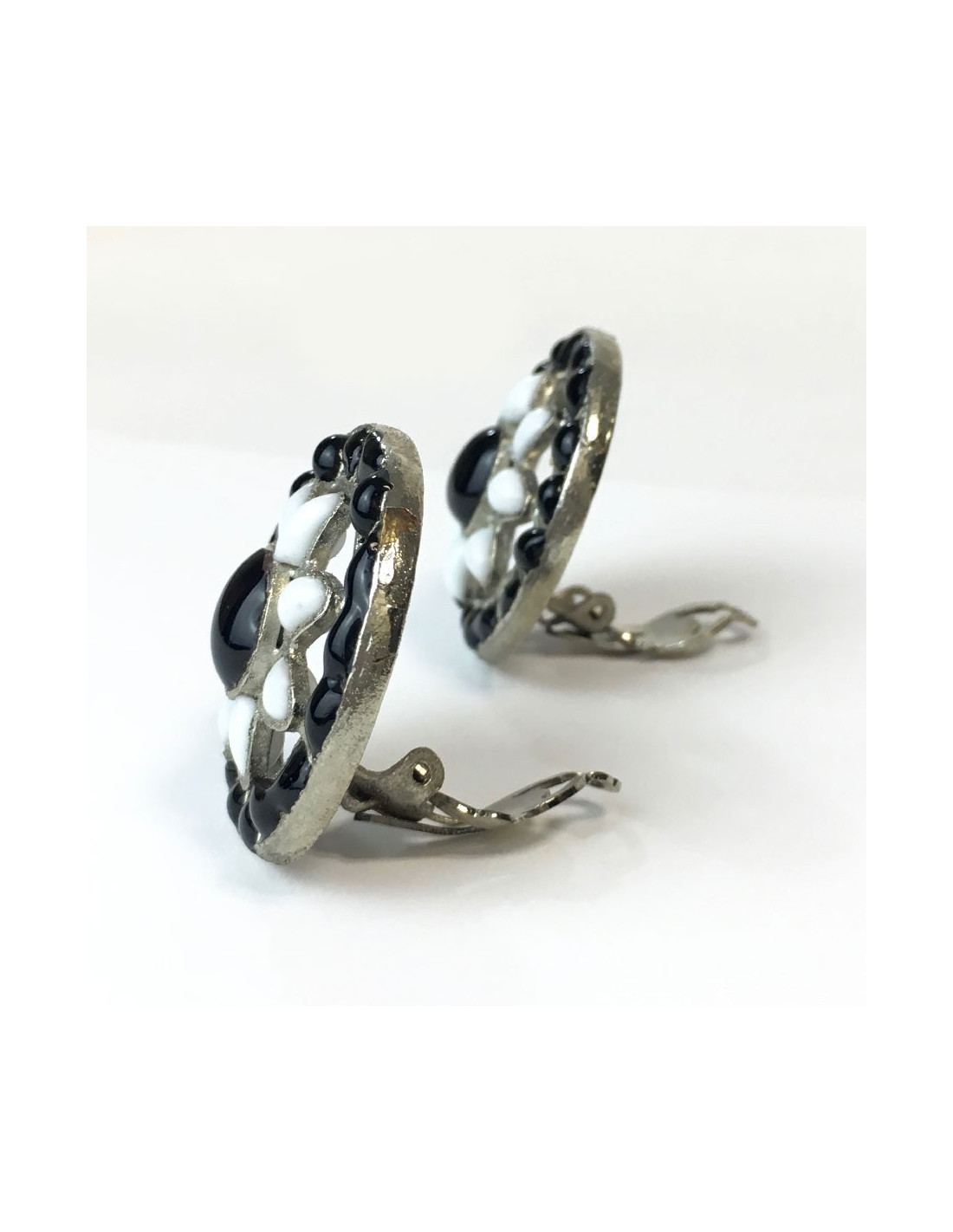 Boucles d'oreille CHANEL vintage pâte de verre noire et blanche