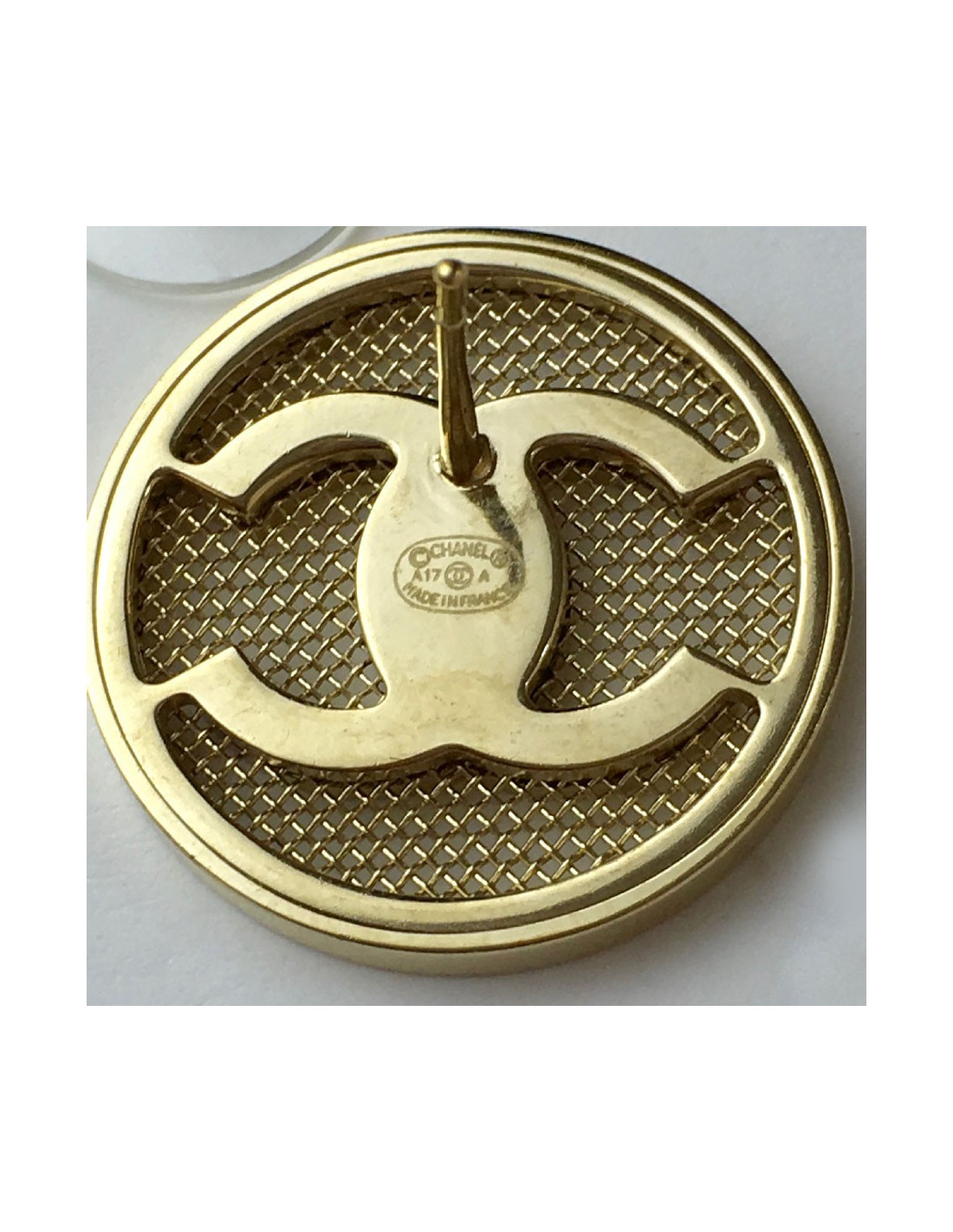 Boucles d'oreille clous Chanel grillage dorés et CC :