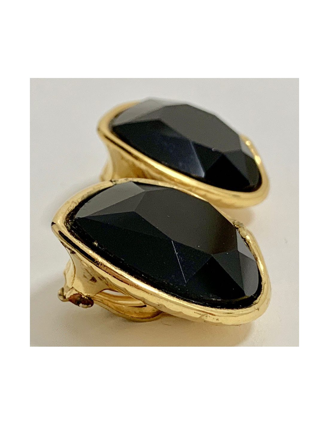 Belle paire de boucles d'oreille de la Maison YVES SAINT LAURENT en forme de coeur. Les clips sont en métal doré et sertis d'un strass coeur noir facetté.