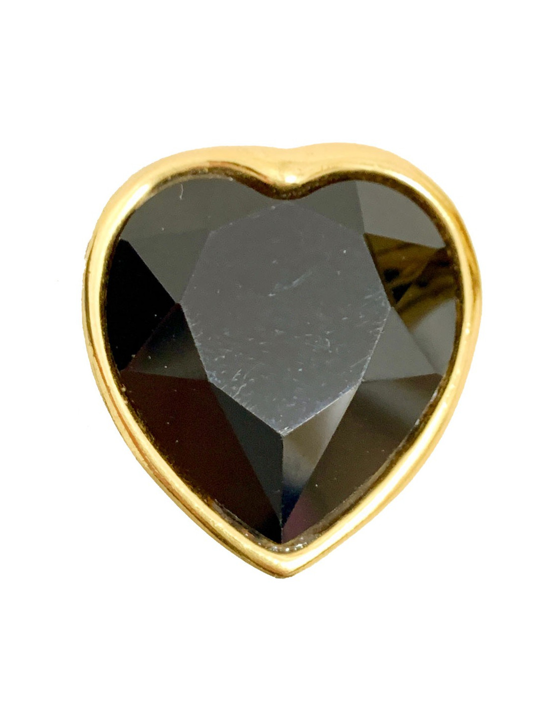 Boucle d'oreille coeur strass noir YSL et métal doré