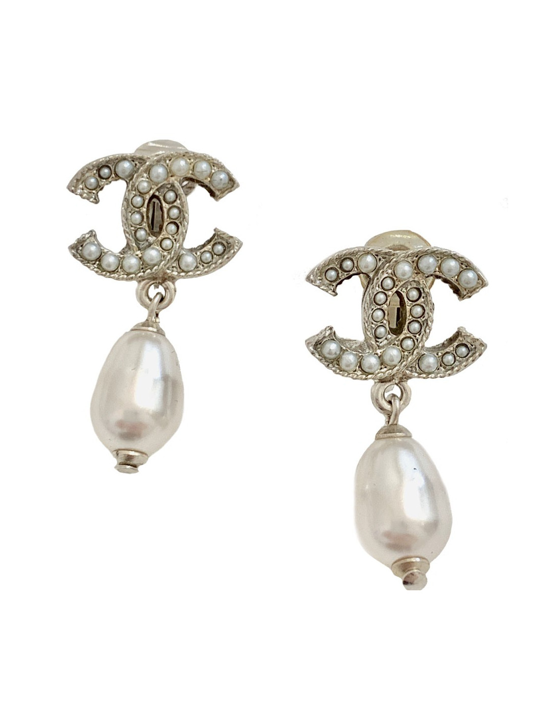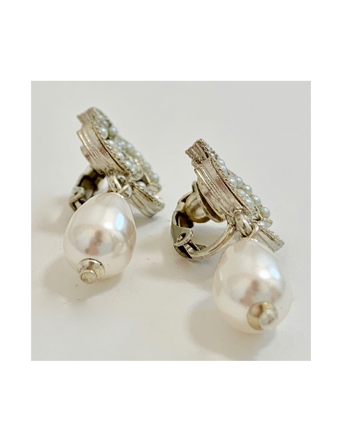 Clips perle nacrée CHANEL et CC perlé