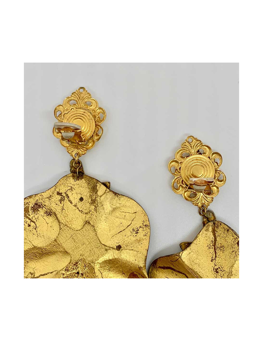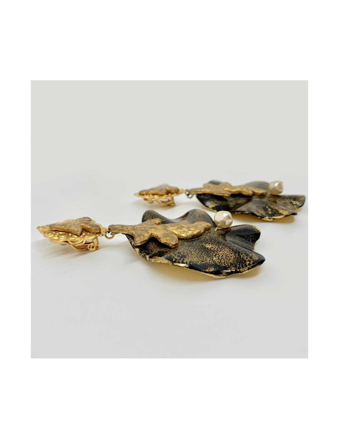 Boucles d'oreilles clips feuille bronze et doré vintage attribuées à YSL