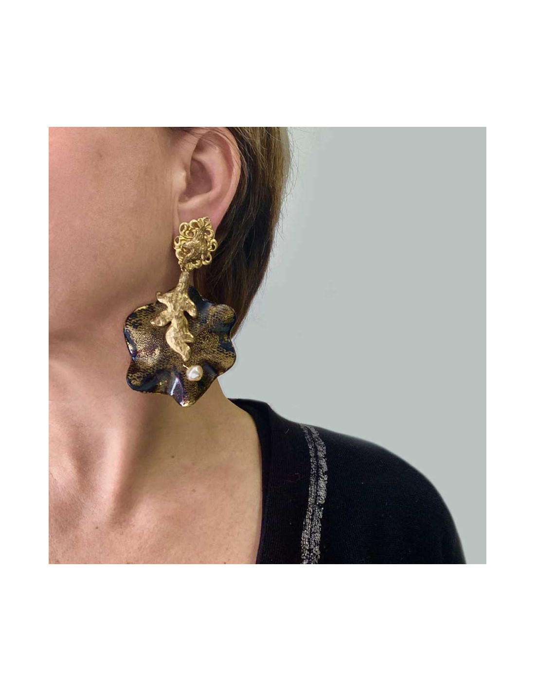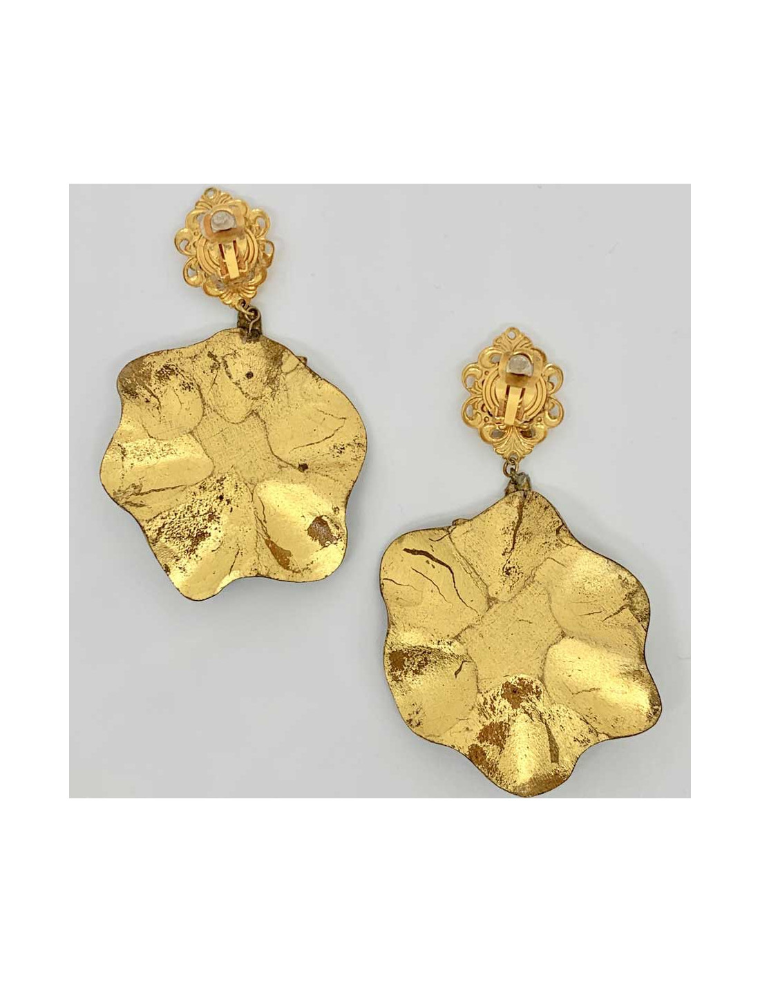 Boucles d'oreille clips feuille vintage en métal bronze et doré