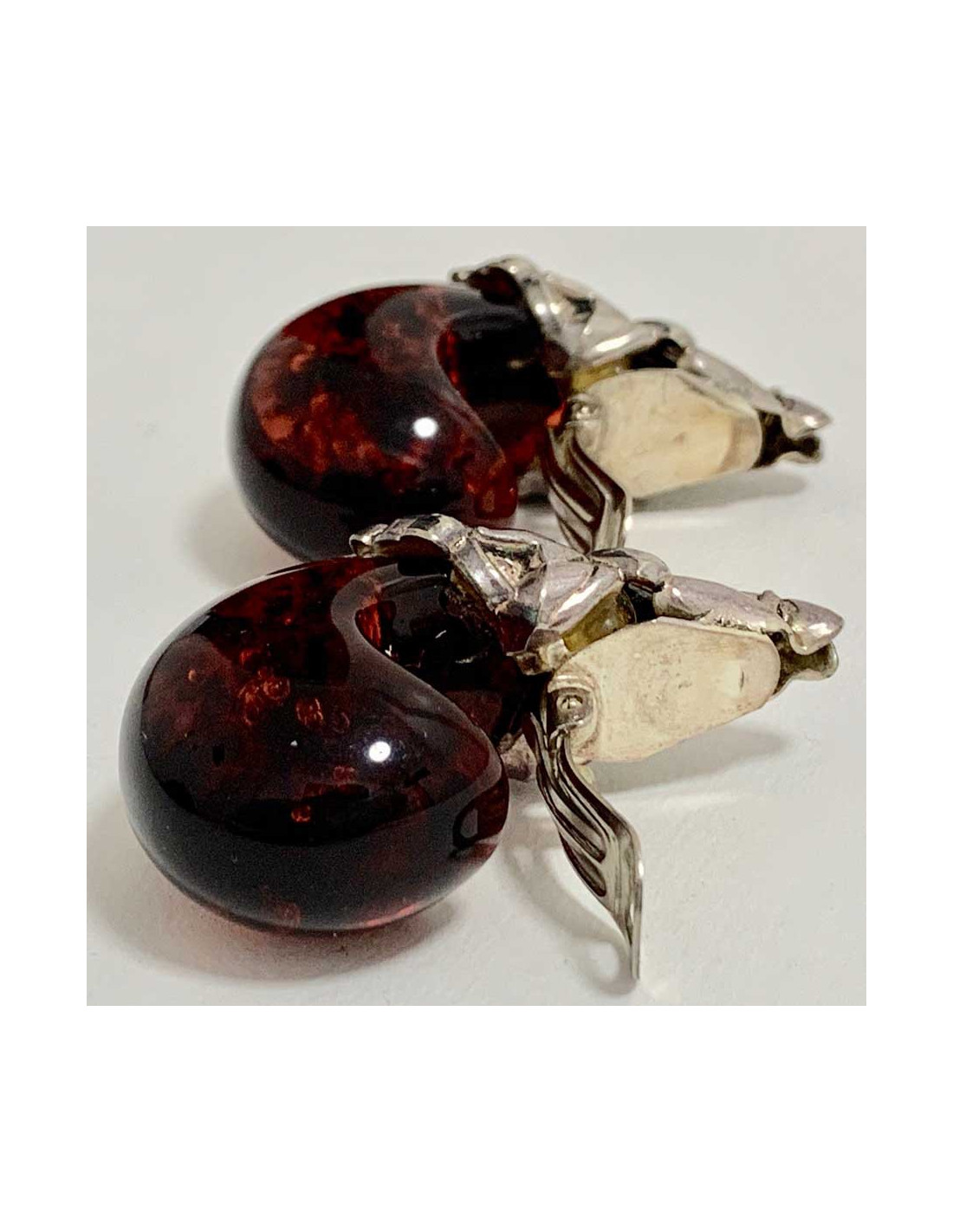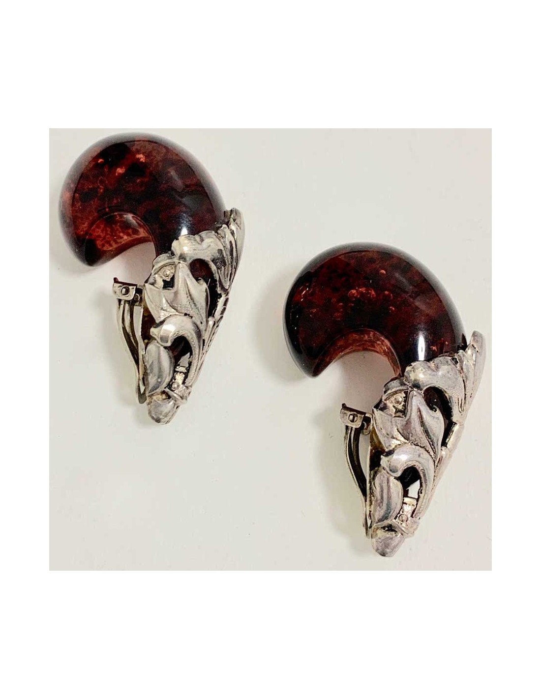 Les clips sont en résine de couleur ambre foncé et métal argent vieilli.