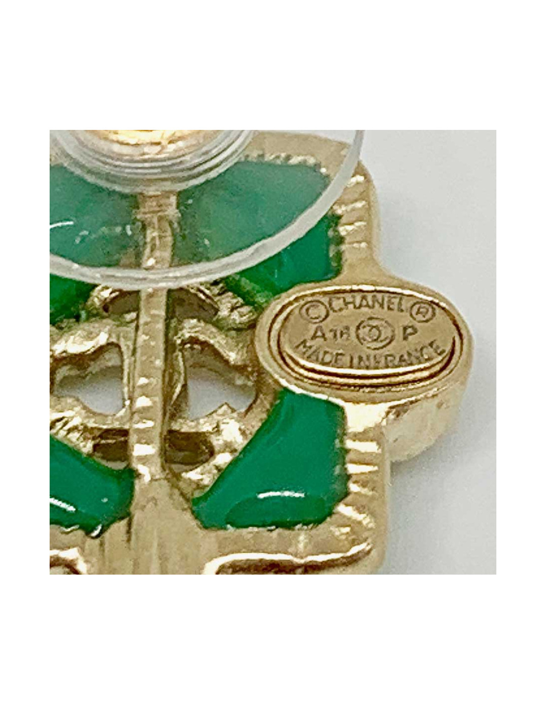 Ravissants clous d’oreille CHANEL en métal doré à l’or fin et perles vertes et nacrées. Très élégantes. Issues de la Collection Automne/Hiver 2016.