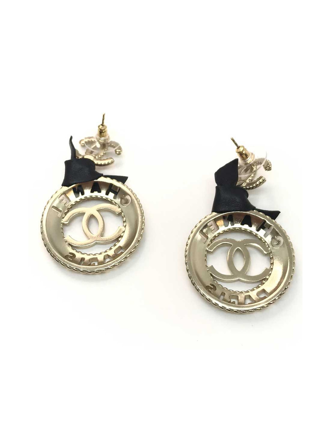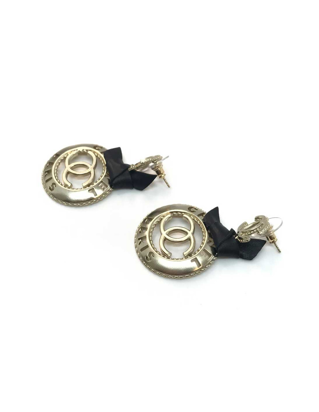 Boucles d'oreille CHANEL logo CC ruban noir