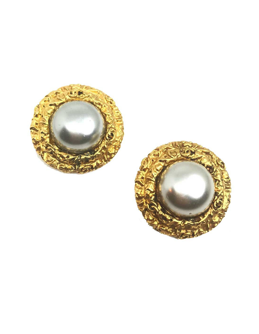 Les clips sont issus de la Maison CHANEL. De forme ronde, chacun des clips encercle une boule nacrée grise par un contour torsadé en métal doré à l'or fin. Un classique de la Maison. Ces boucles d’oreilles sont issues de la collection Chanel Automne/Hiver 1995.