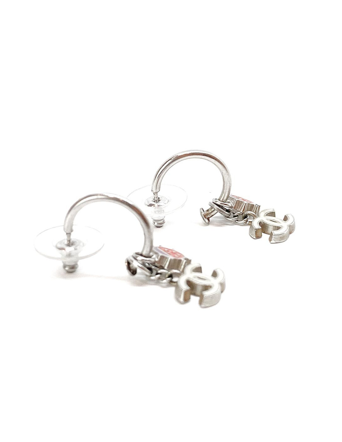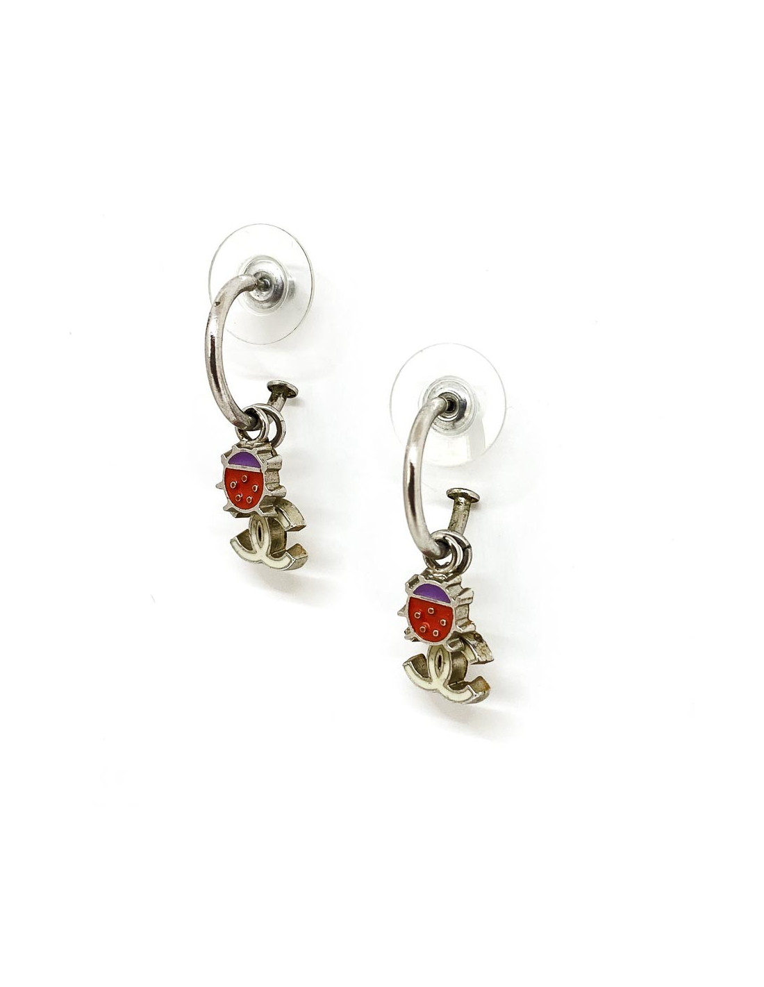 Boucles d'oreille clous CHANEL Coccinelle rouge et CC blanc