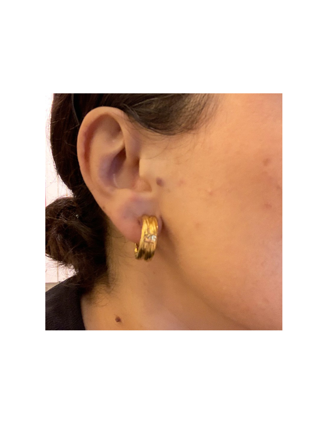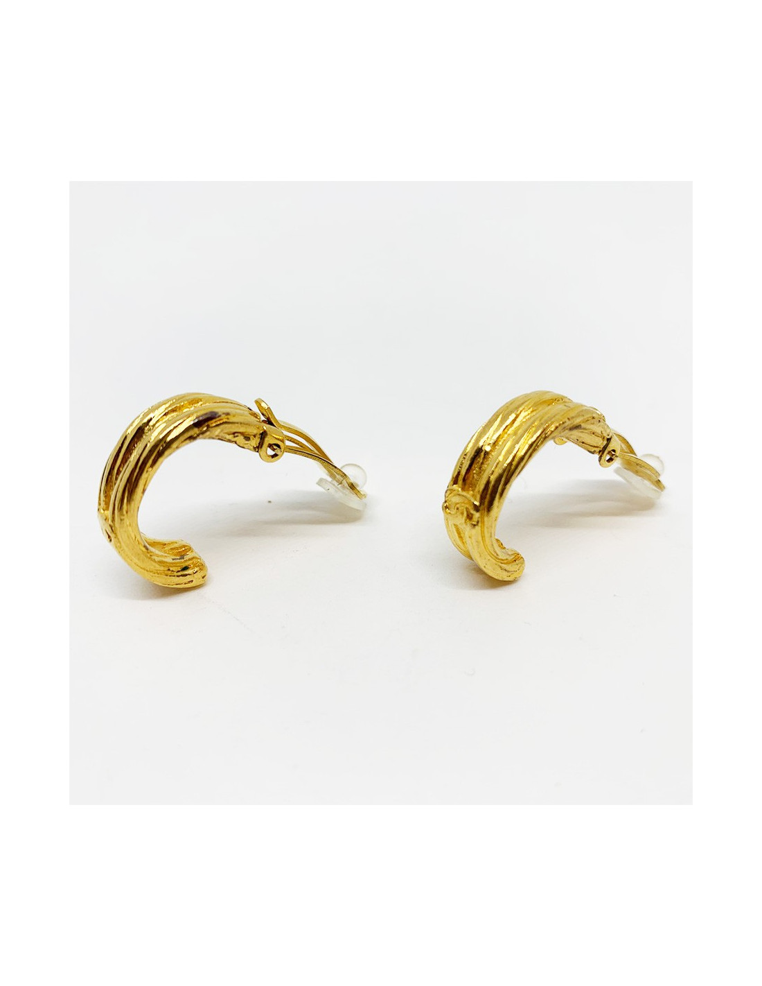 Les BO sont des clips vintage datant de l'année 1993. Ils sont en parfait état. Chacun mesure une longueur de 5 centimètres et le diamètre de l'anneau le plus important a un diamètre de 3.5 centimètres. Présence de la pastille de la marque et de la mention Made In France.