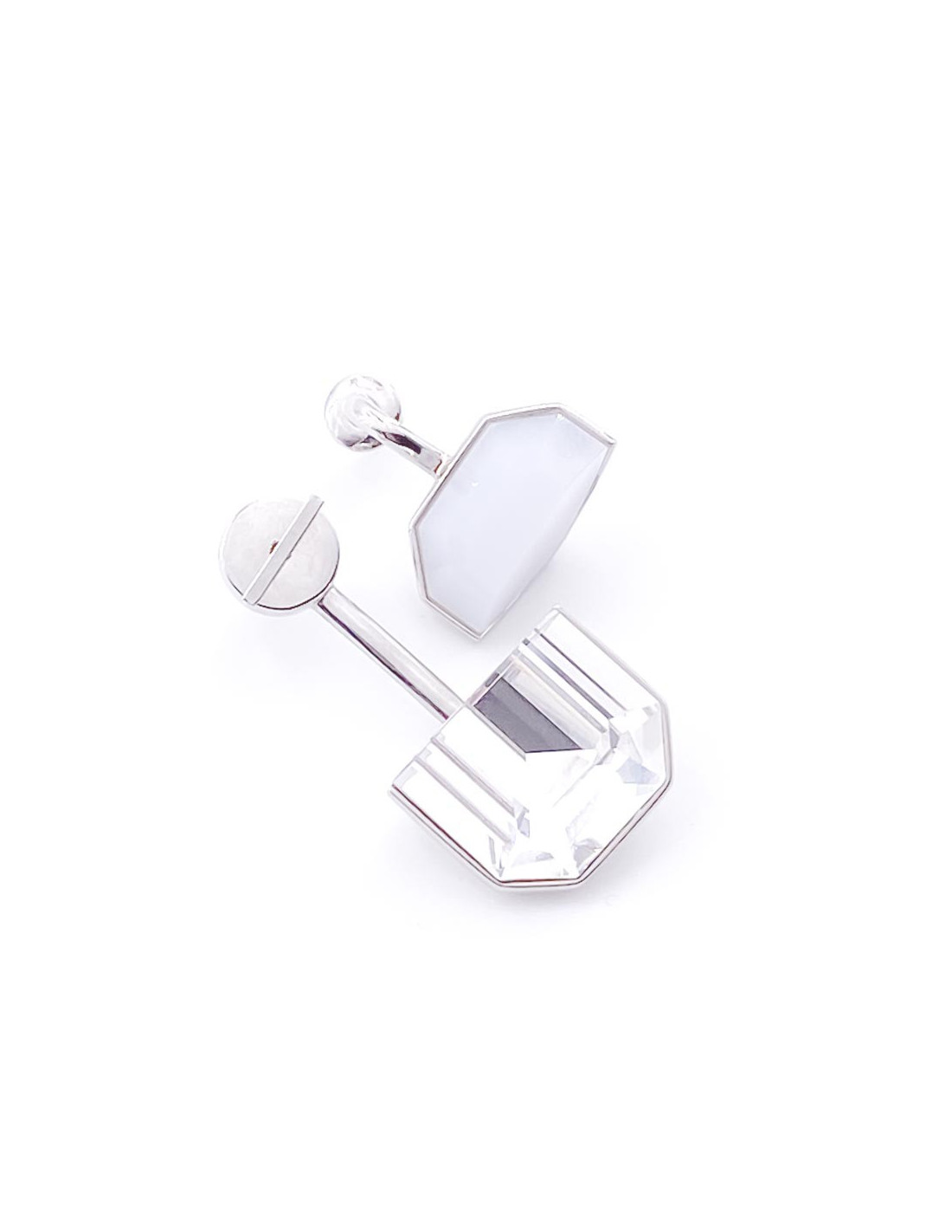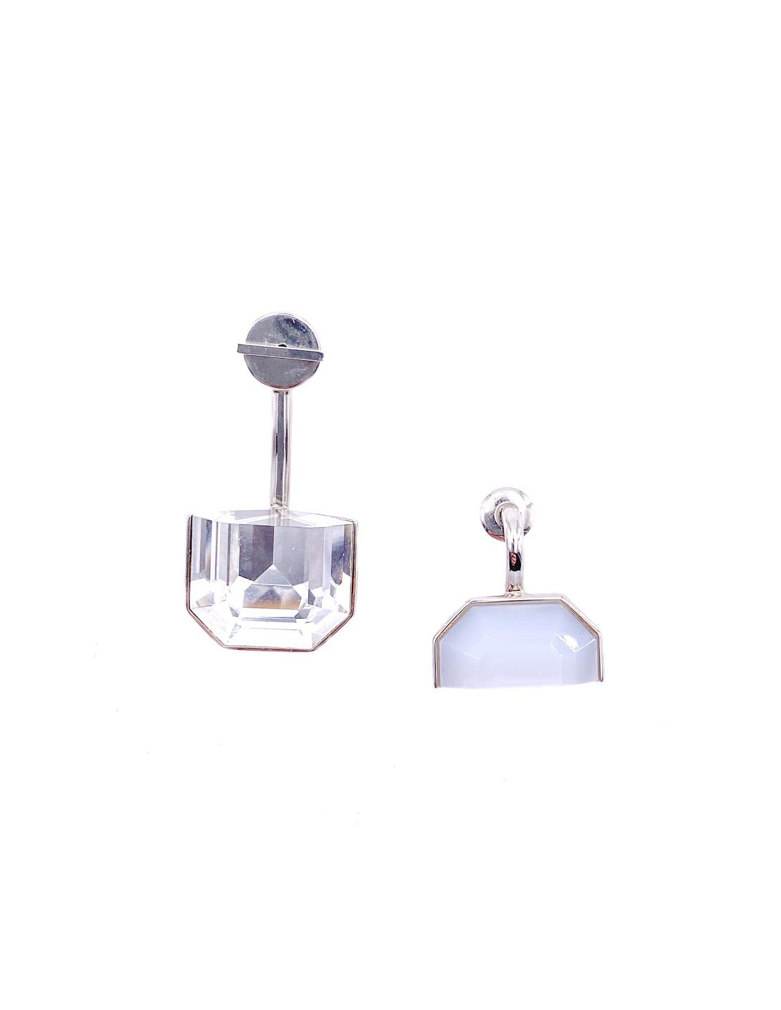 Les boucles d'oreille sont issues du défilé Croisière 2015 lors duquel la Maison DIOR introduit les bijoux séparables à mixer les uns avec les autres : la ligne DIOR SET. Les boucles d'oreille sont des clous à porter sur la même oreille ou séparément. Sur l'une est sertie un cristal éclatant qui contraste avec la seconde boucle d'oreille en quartz. Nous aimons l'aspect ludique de cette ligne ! Soyez la créatrice de votre look et faites vos assemblages !