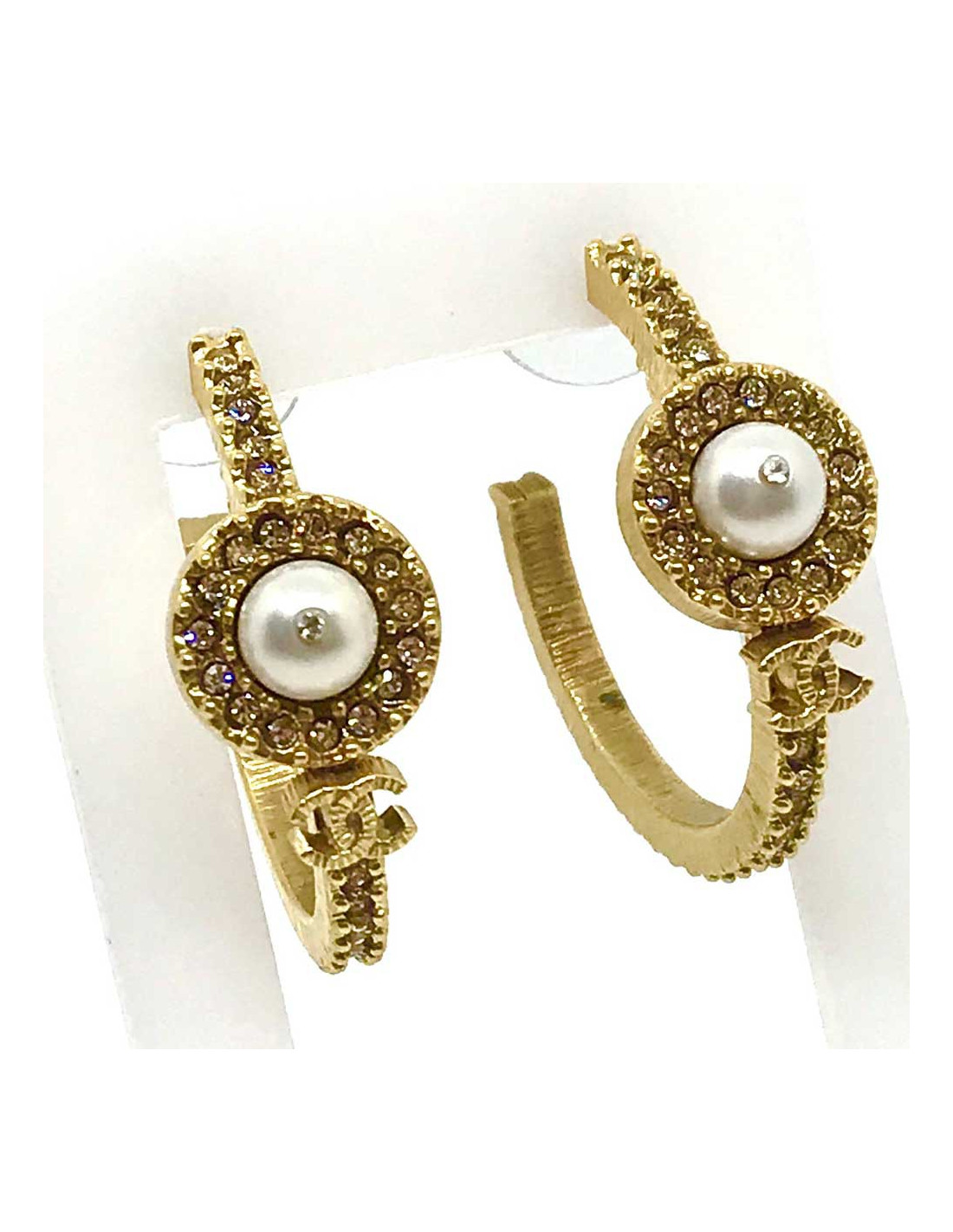 Créoles CHANEL perle et strass
