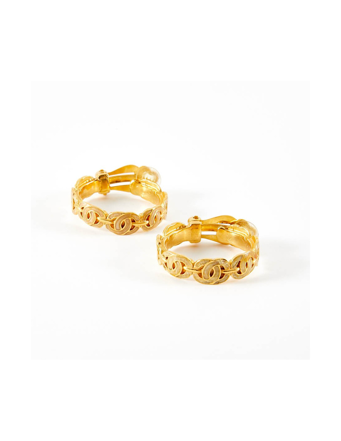 Intemporelles. Créoles en forme de chaine émaillée (l'émail est parti par endroits). La bijouterie est dorée vintage.