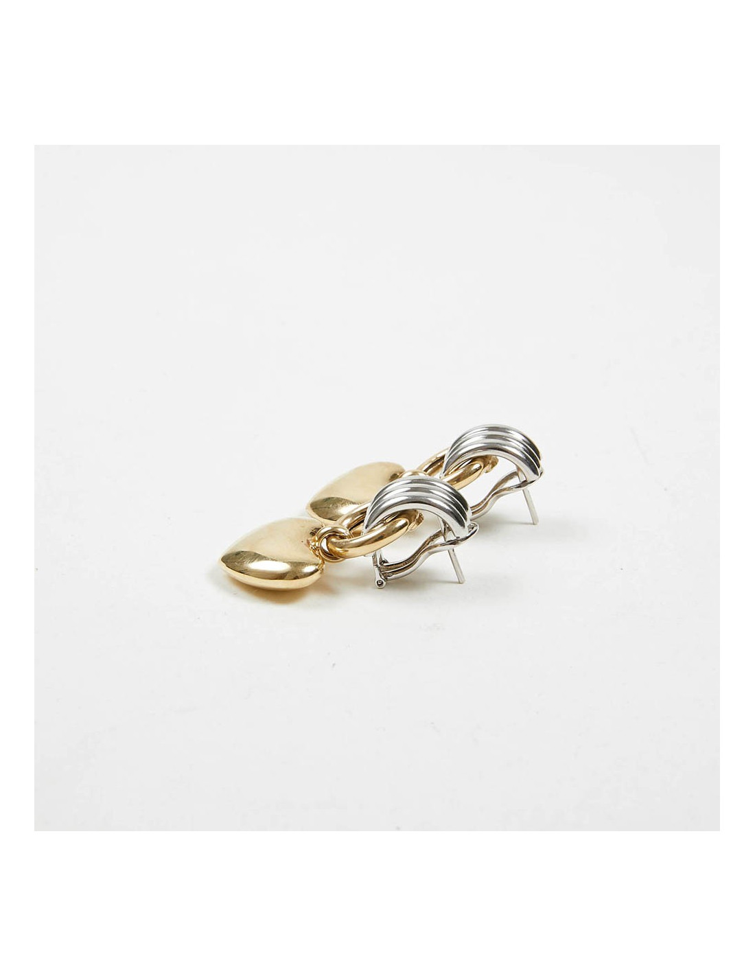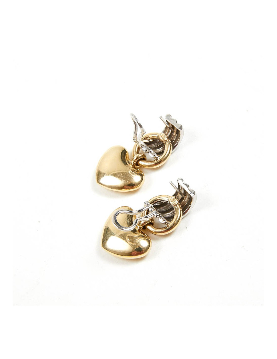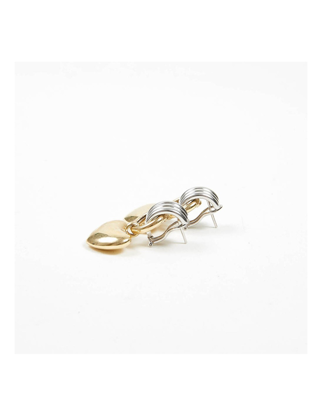 Ravissantes boucles d'oreille bicolores, or jaune et blanc 585 (14 carats). Ce sont des clous renforcés par un clip (voir photos). Elles sont en parfait état.