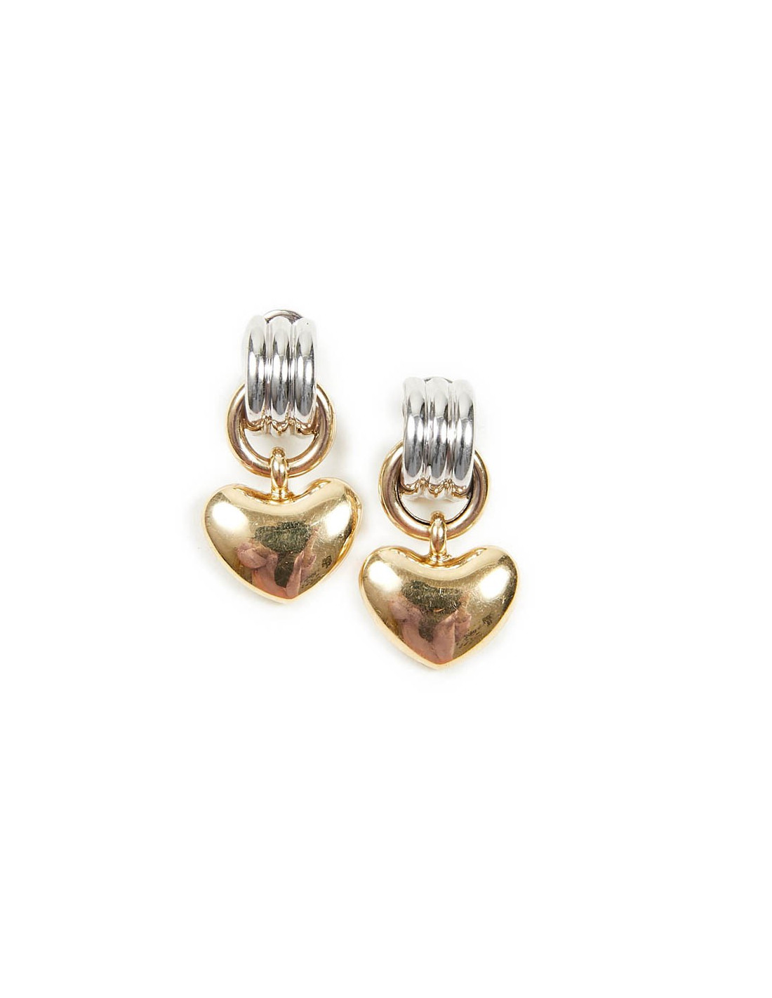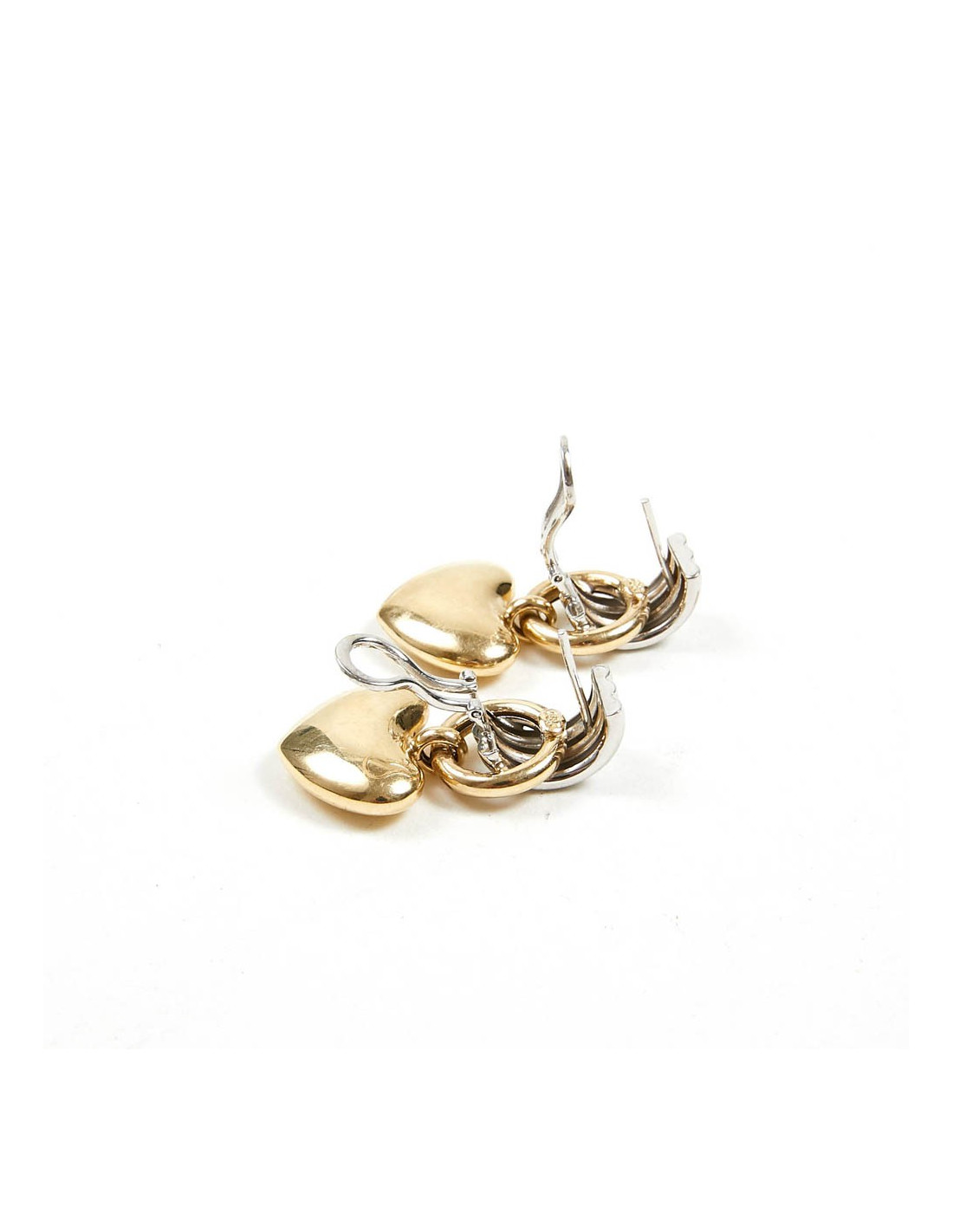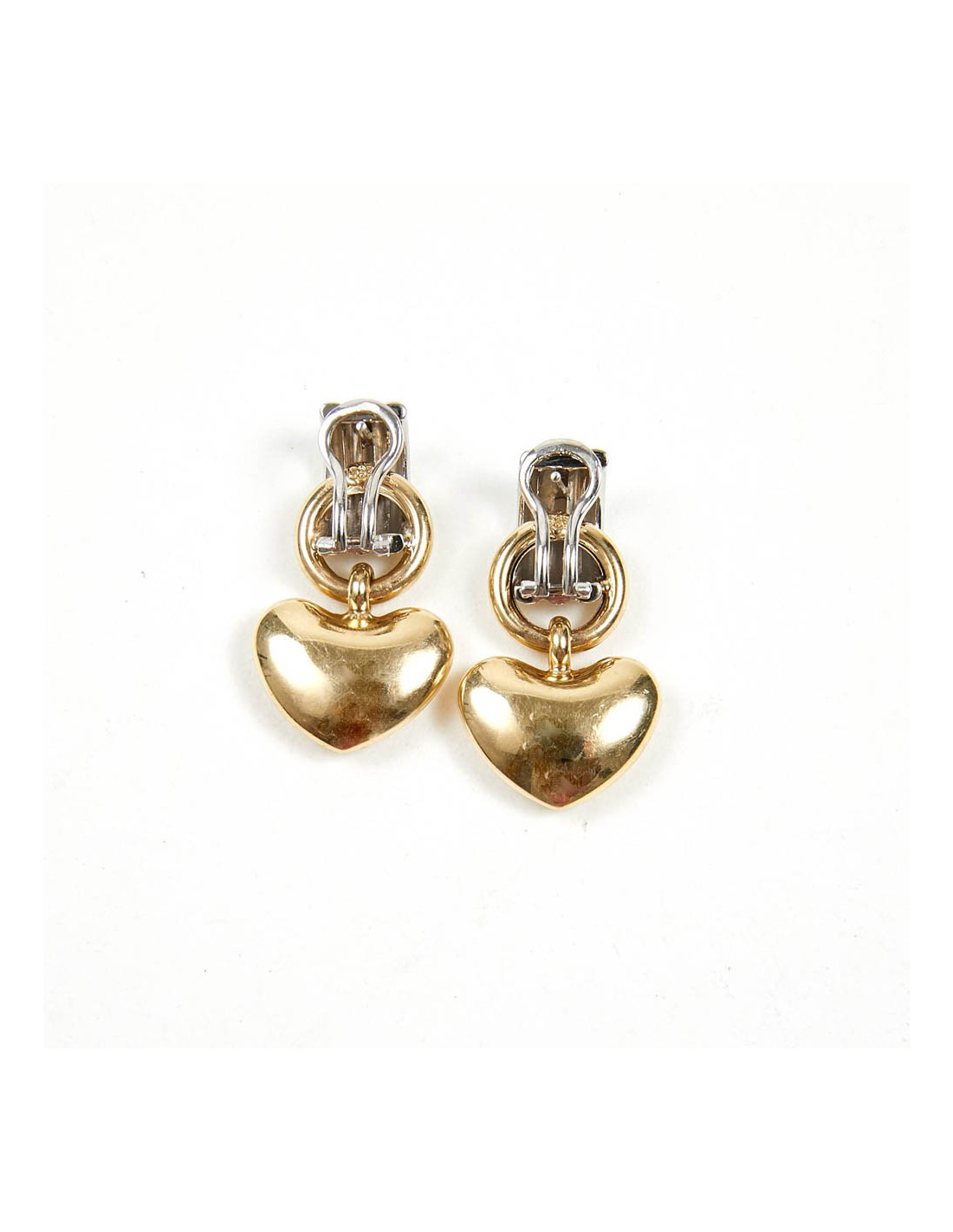 Ravissantes boucles d'oreille bicolores, or jaune et blanc 585 (14 carats). Ce sont des clous renforcés par un clip (voir photos). Elles sont en parfait état.