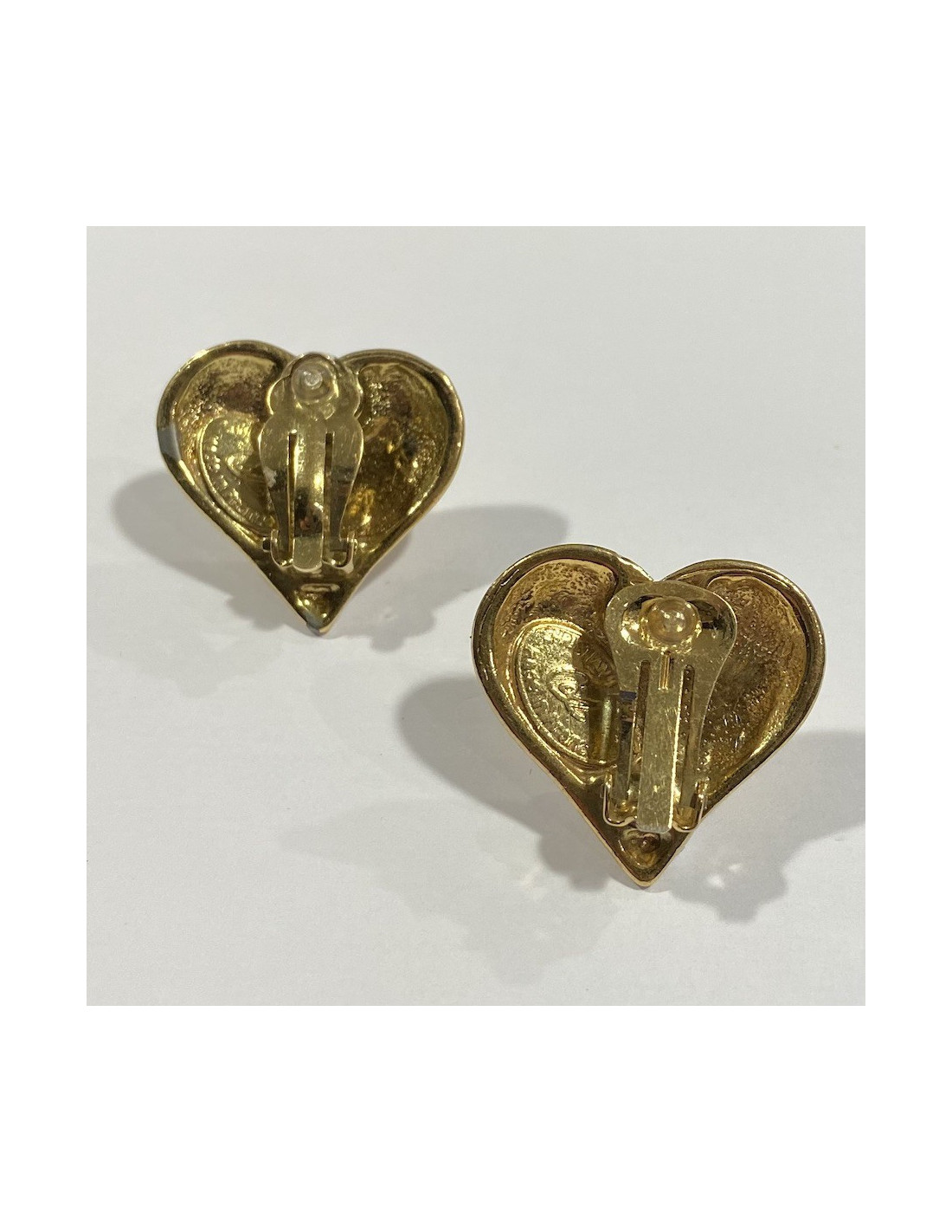 Vendu BOUCLES D'OREILLE Boucles d'oreille clips CHRISTIAN LACROIX coeur vintage en métal doré CHRISTIAN LACROIX 23262 290,00 € Boucles d'oreille clips Christian Lacroix vintage en métal doré et résine beige. Collection été 1994. Made in France. En très bon état. Infimes traces de vert-de-gris au dos des clips. Dimensions : 3,7x3,4 cm Livrés dans un pochon Valois Vintage Paris Voir
