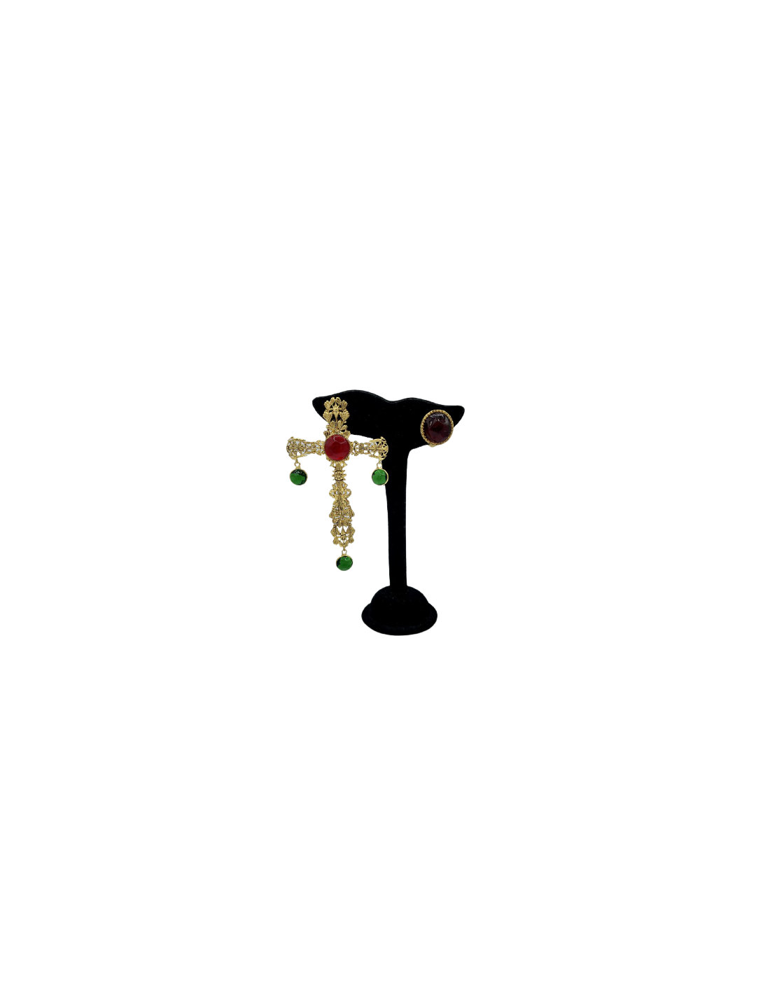 Clous croix pendants MARGUERITE DE VALOIS rubis émeraude