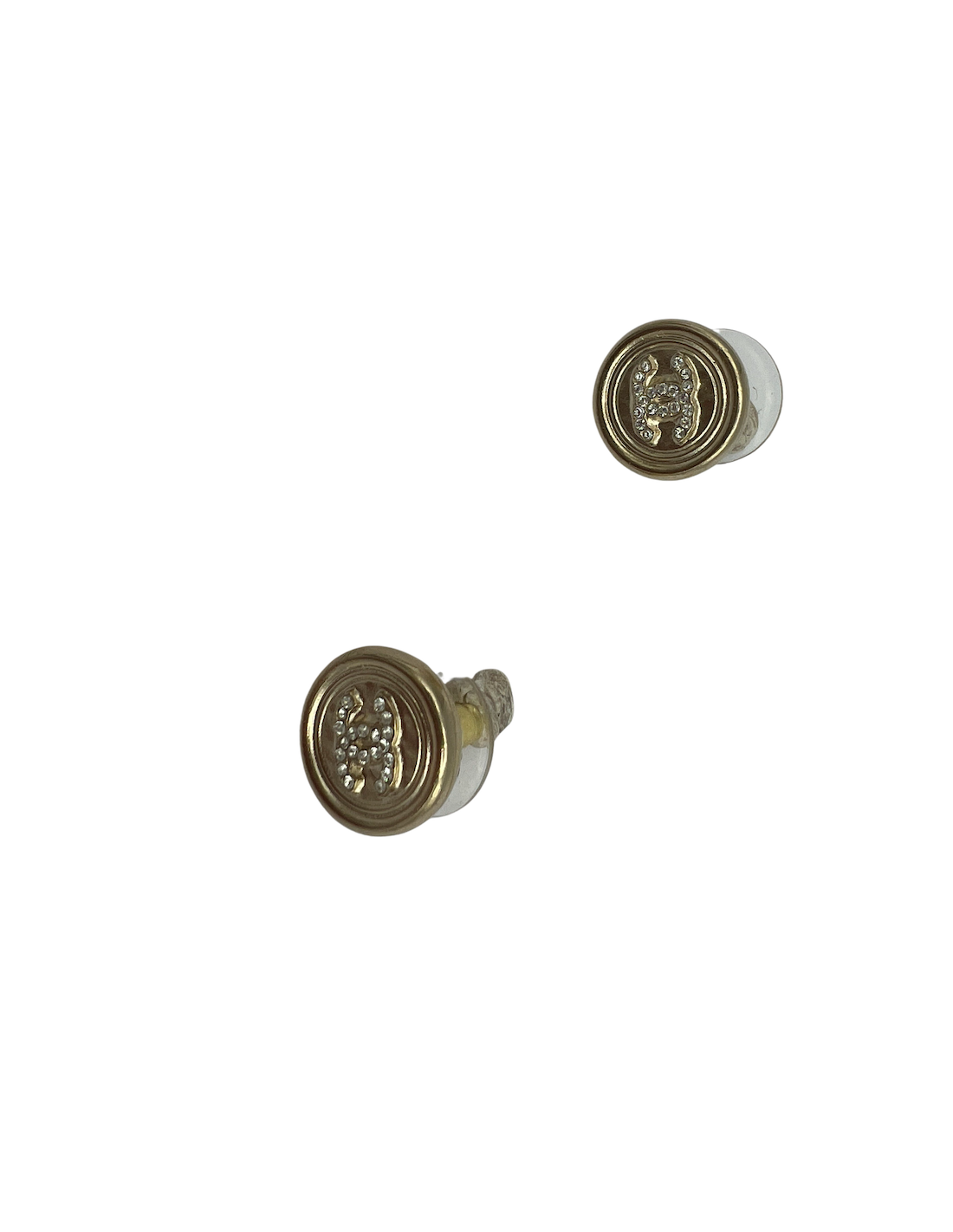 Boucles d'oreille clous CHANEL CC en métal argenté et strass