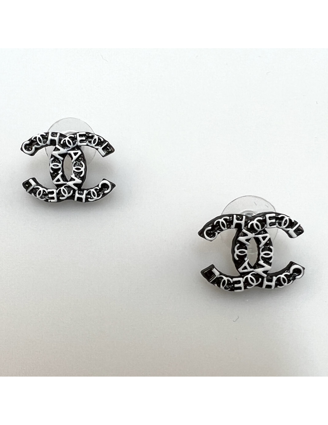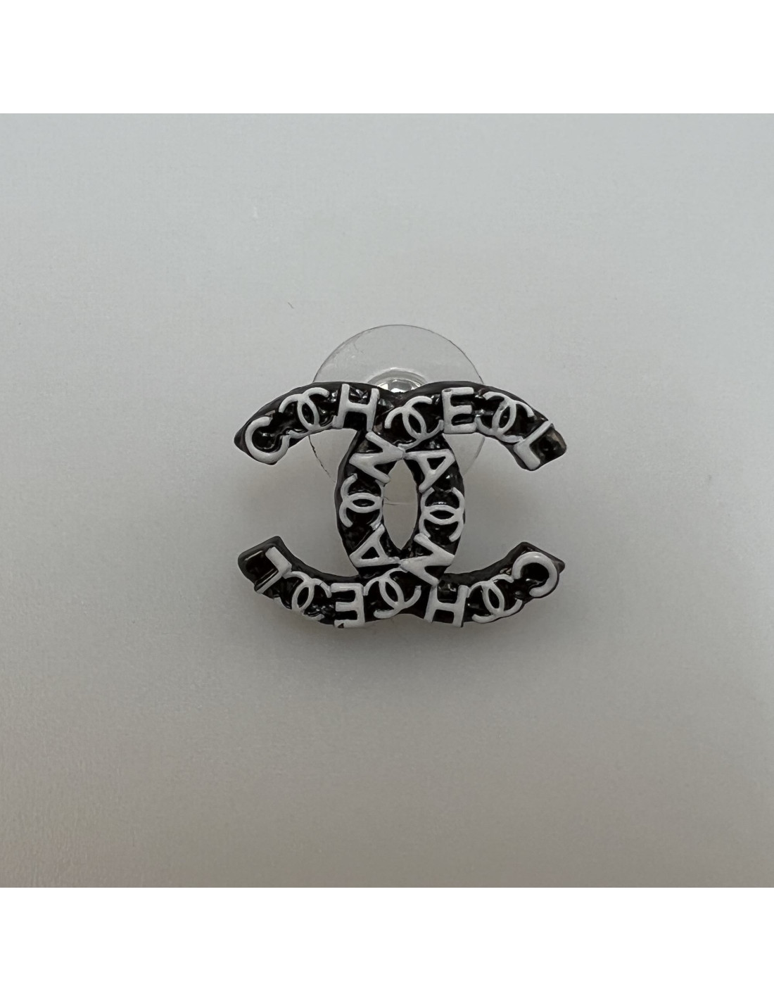 Boucles d'oreilles clous CHANEL perlés en métal doré
