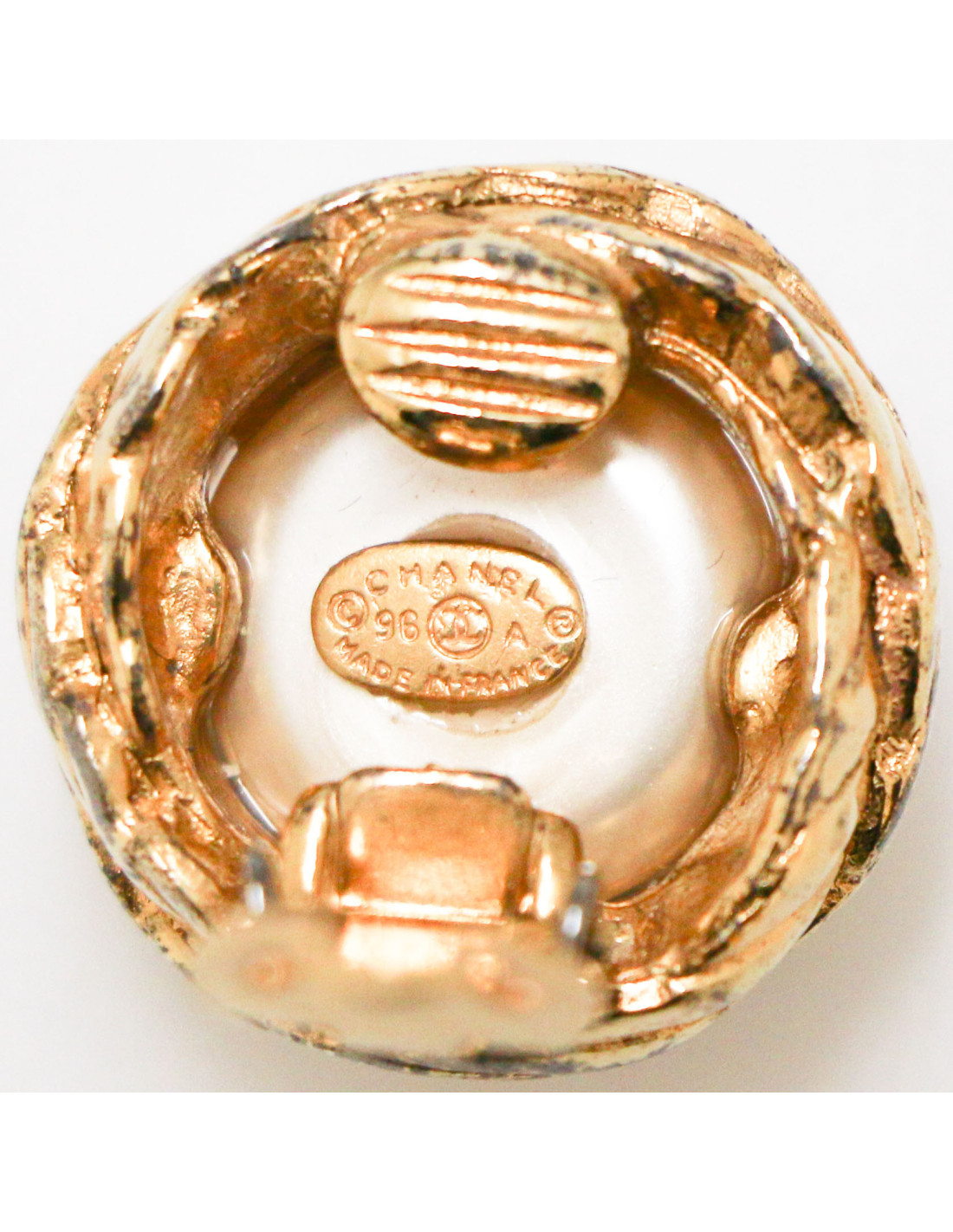 Détails : clips, ces boucles d'oreille sont bombées une chaine entrelacée encerclant une demi perle nacrée surmontée d'un double C. La dorure est légèrement passée