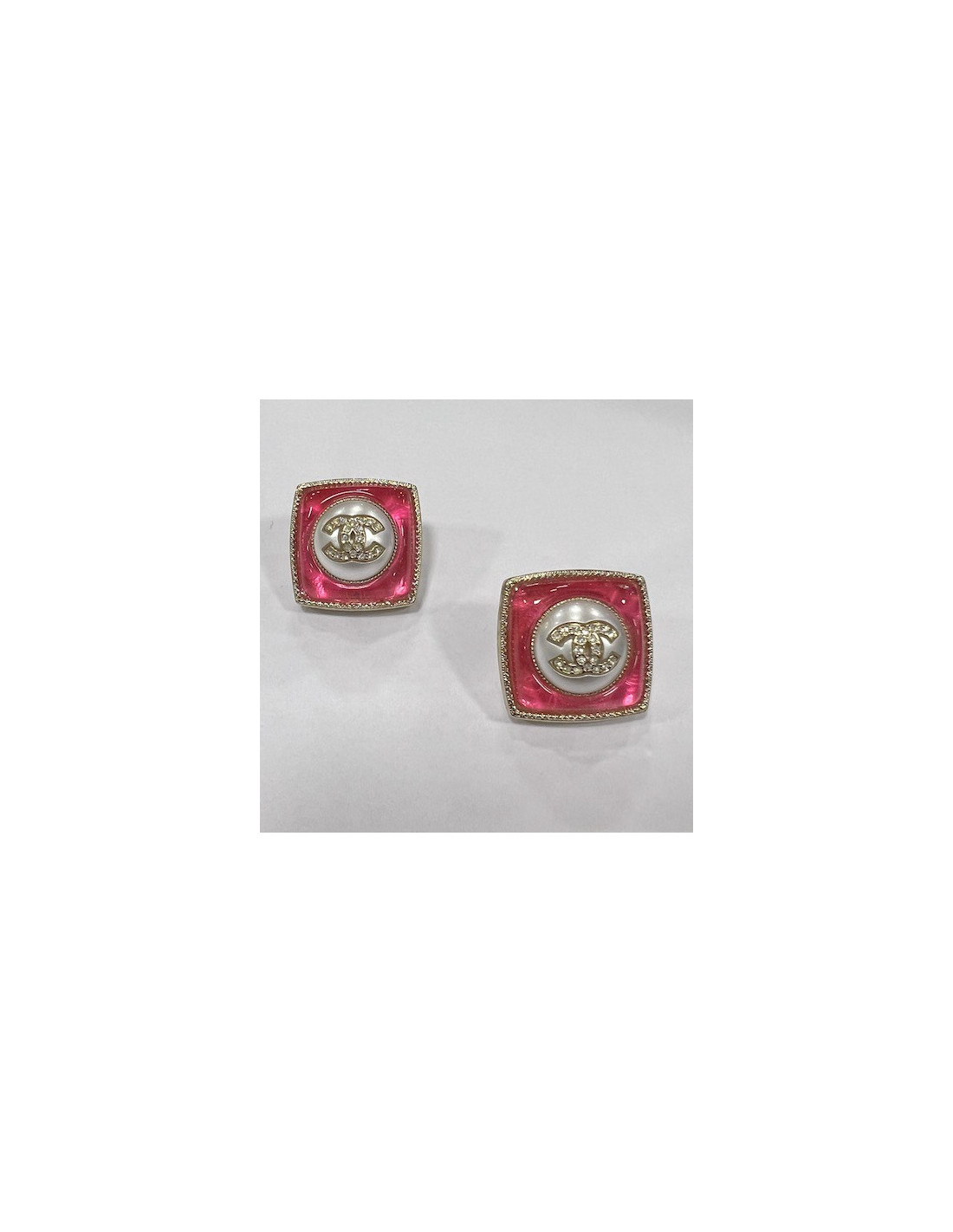 Boucles d'oreille CHANEL grillage doré et double C