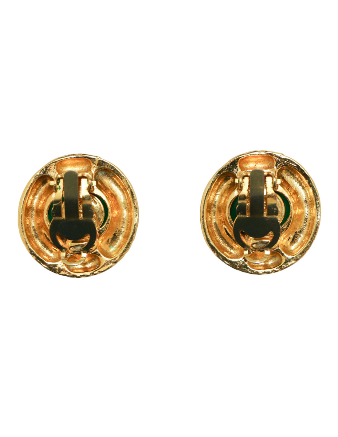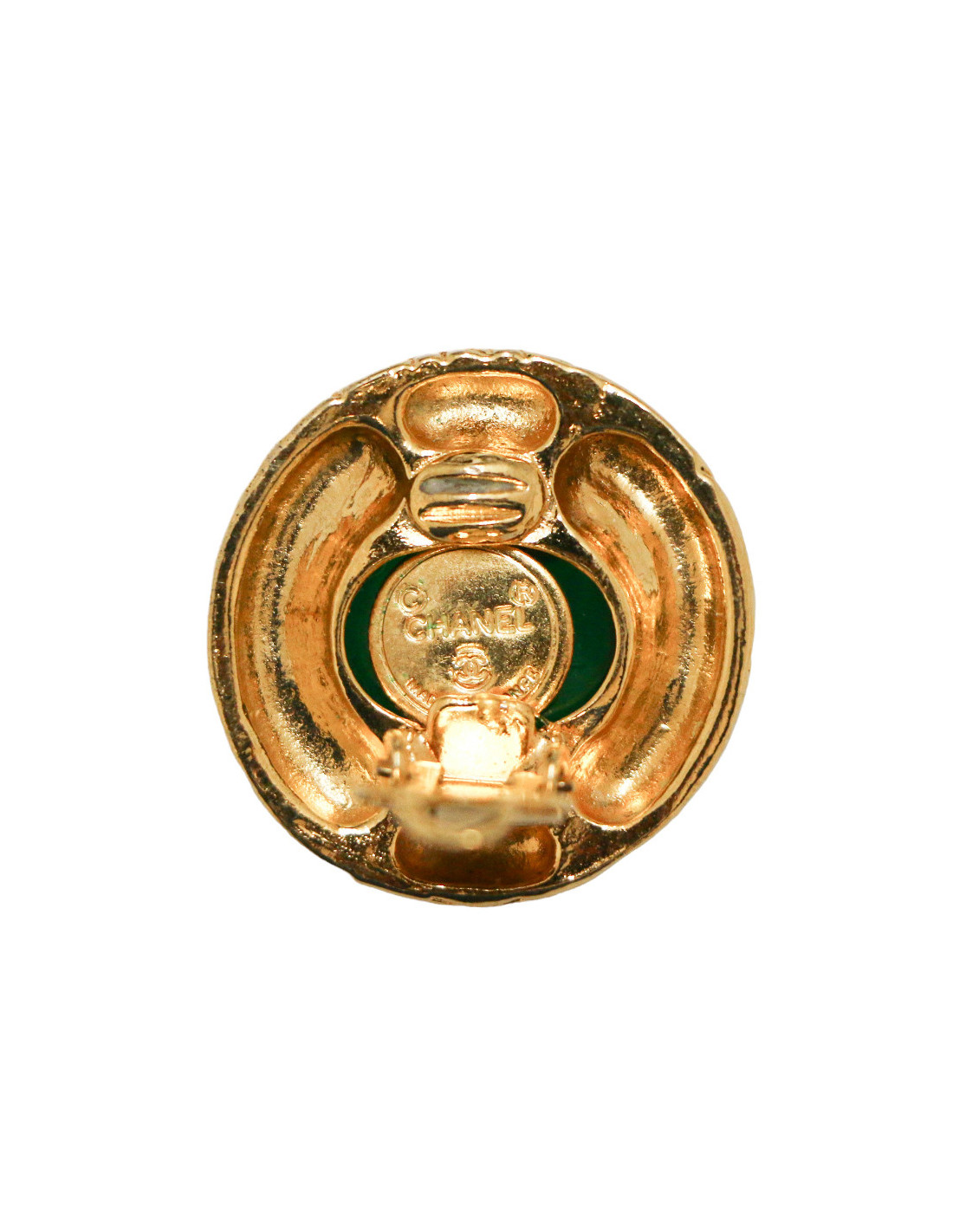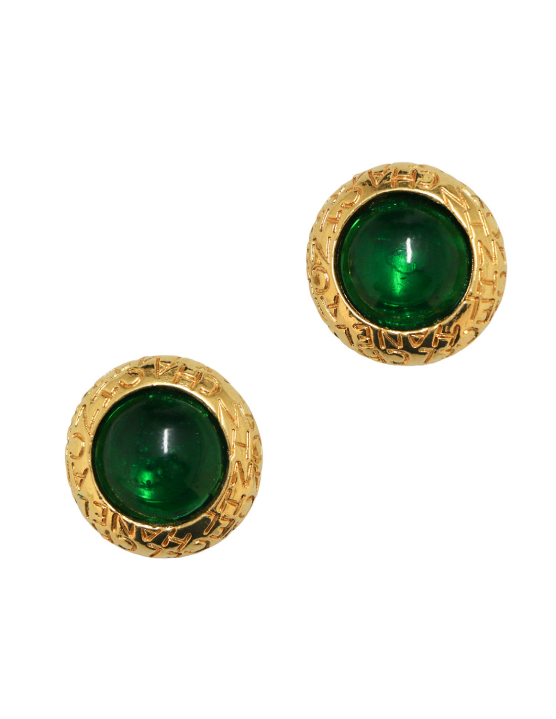 Clips vintage CHANEL ronds émeraude