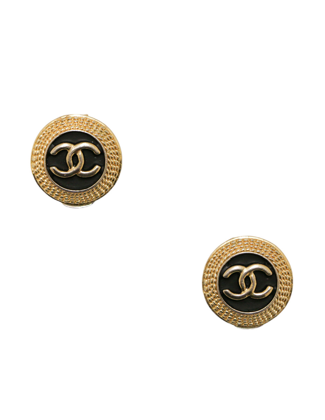 Détails : le métal est partiellement décoloré. l'arrière de la boucle d'oreille a un stamp Chanel des années 80.