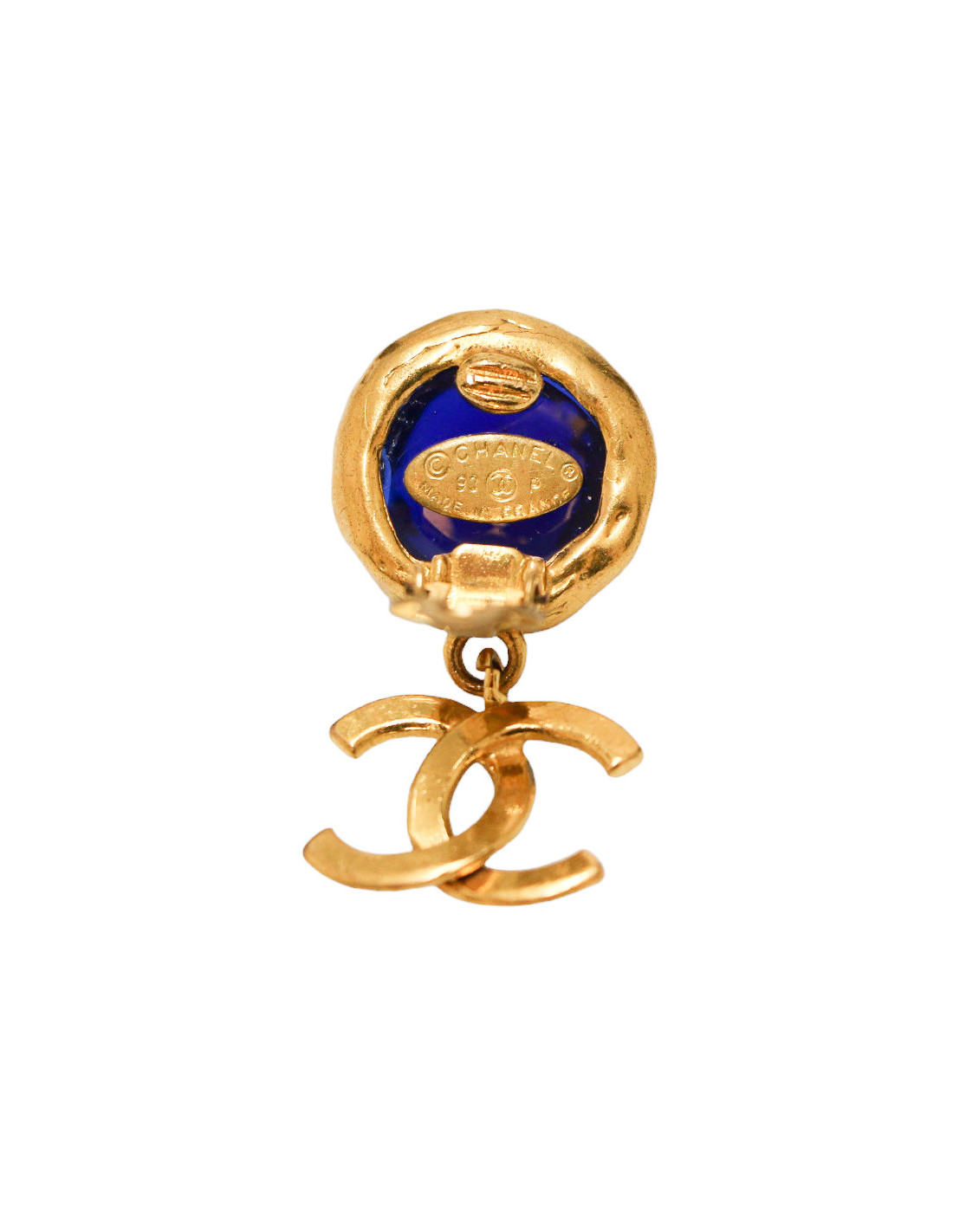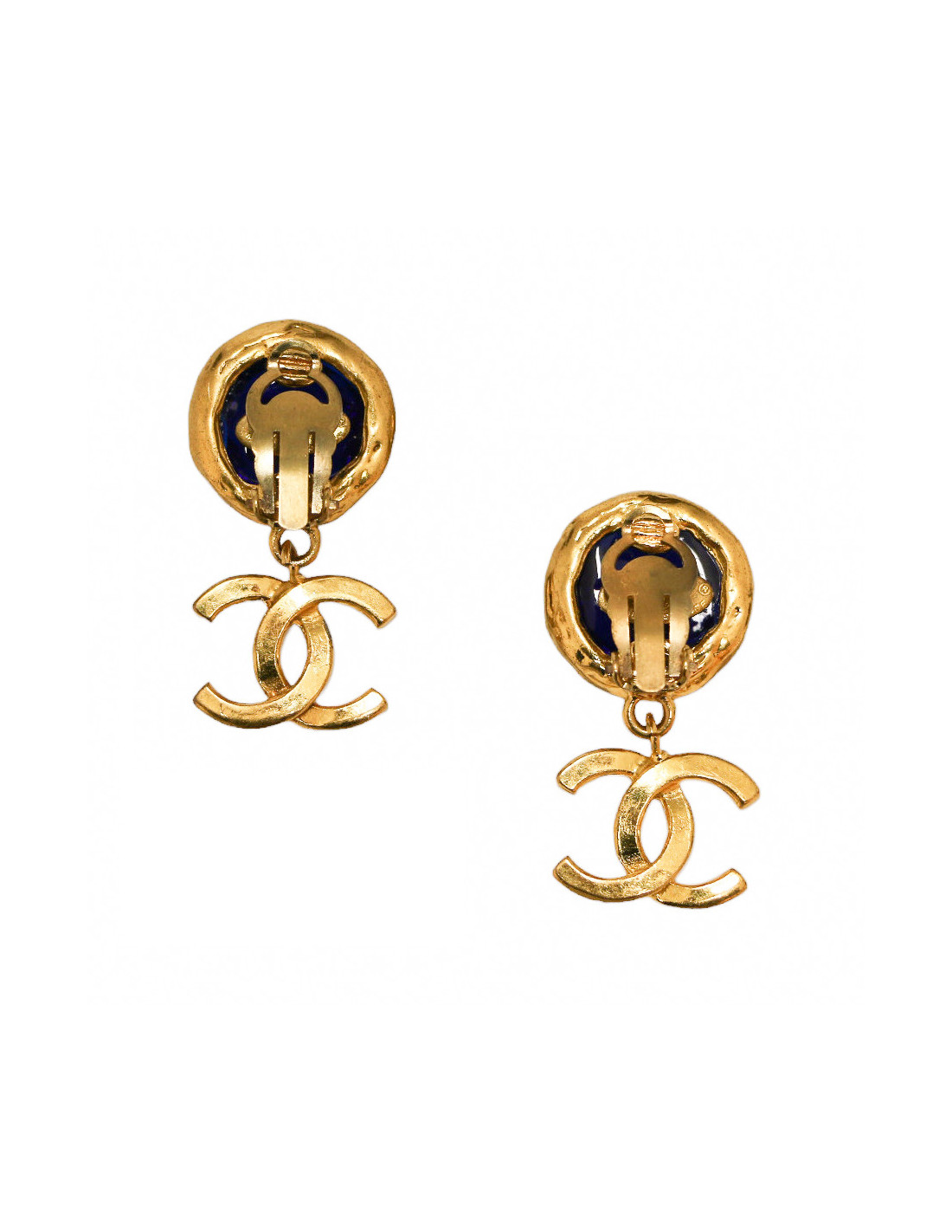 Détails : clips vintage en pâte de verre avec gros CC pendant, très recherché par les collectionneurs.