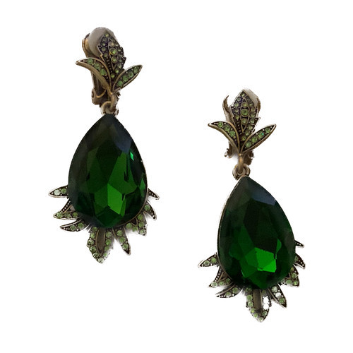 Clips Oscar de la Renta vert émeraude strass – boucles d’oreilles vintage