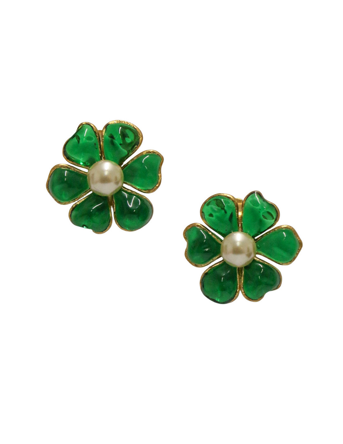 Clips fleurettes Marguerite de Valois émeraude perle